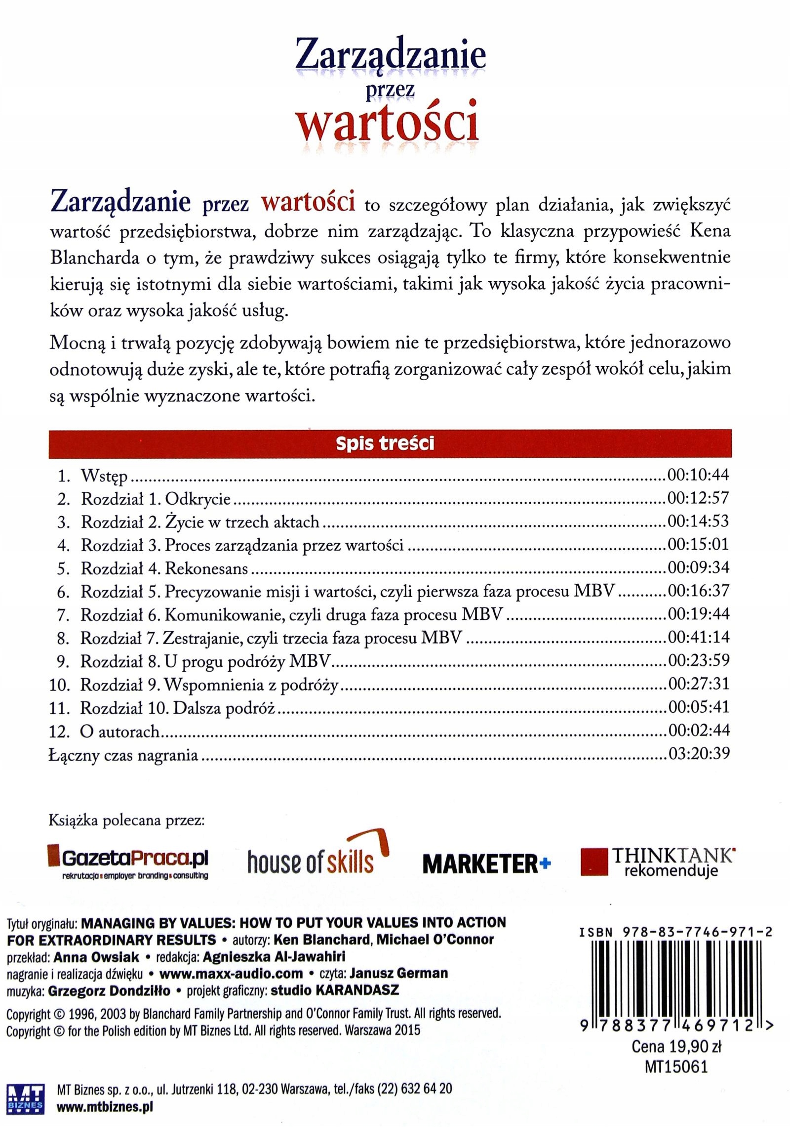 ZARZĄDZANIE PRZEZ WARTOŚCI - Ken Blanchard, Michael Oconnor AUDIOBOOK CD-MP