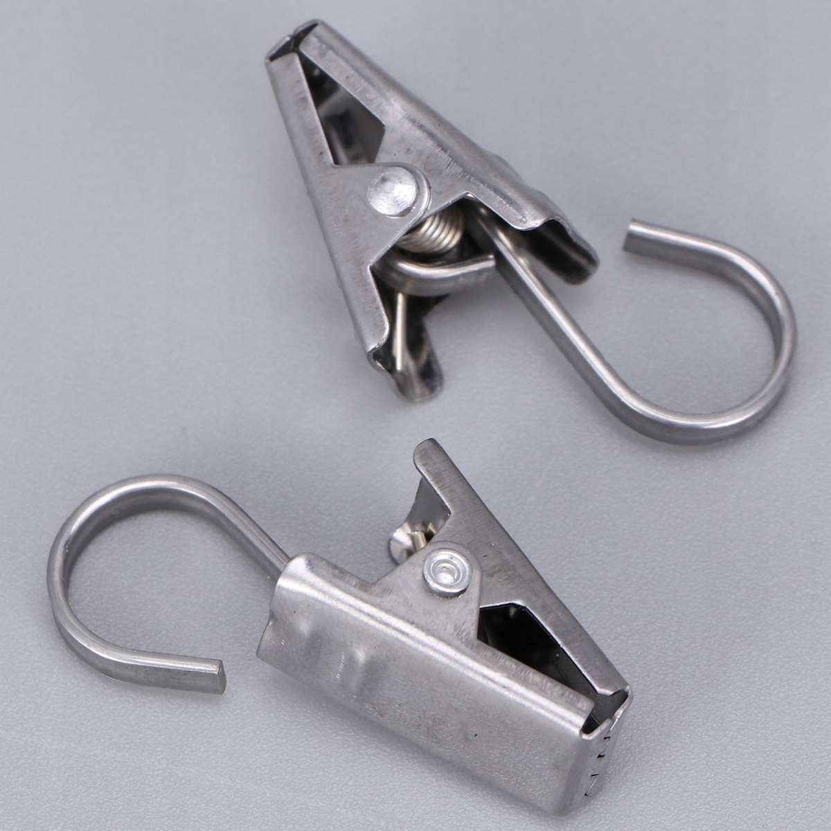 Изделие представляет собой упаковку из 20 шт. зажимов для драпировок с крючком. Крючок плавно скользит по имеющемуся карнизу для штор и оснащен прочным пружинным зажимом, который крепится к шторам для элегантного подвешивания. Может использоваться для детских художественных проектов, подвешивания штор и демонстрации фотографий; творческие возможности безграничны.