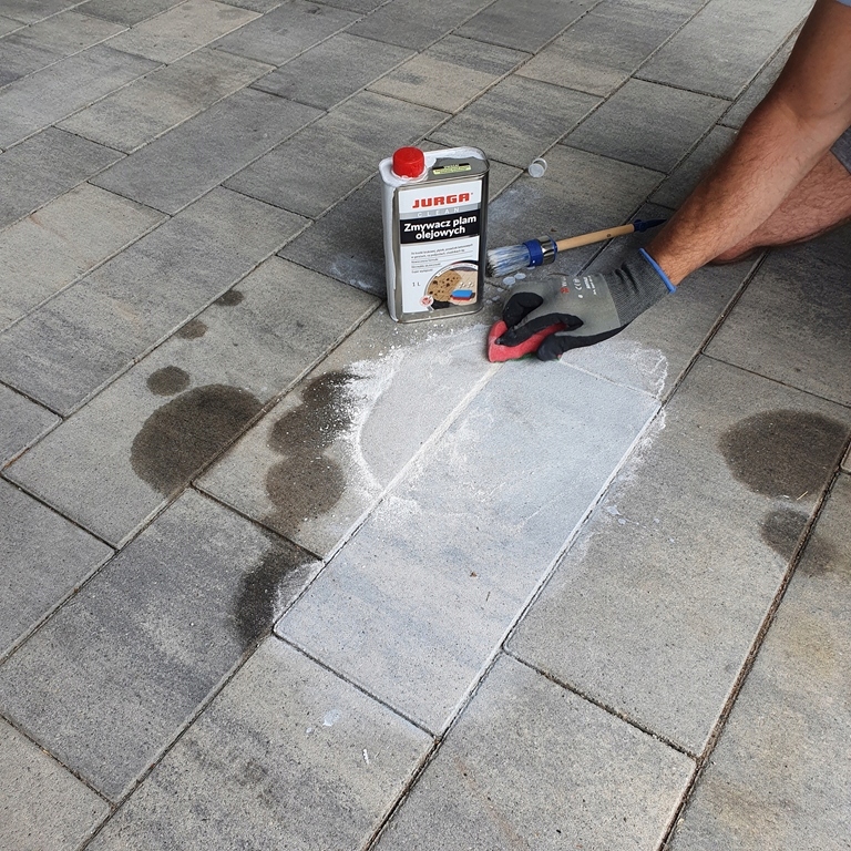 JURGA CLEAN OIL SAIN REMOVER — профессиональное средство для удаления самых неприятных масляных и жировых пятен. Современная формула, двухфазный продукт глубокого проникновения. Подходит для очистки брусчатки, плитки, бетонных поверхностей, таких как: полы в гаражах, мастерских, подъездные пути, тротуары и т. д.