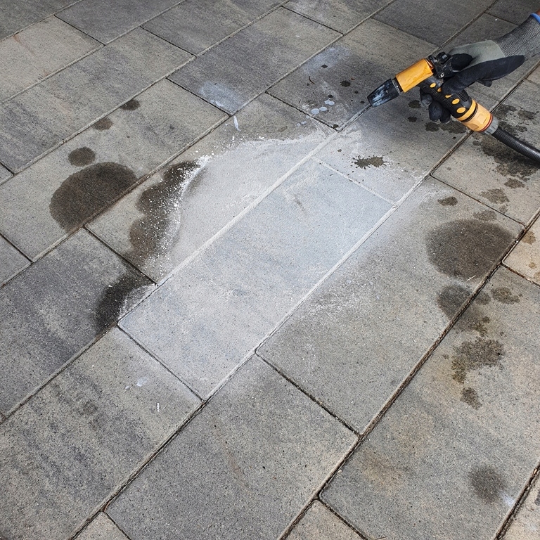 Последующие этапы удаления пятен с брусчатки или бетонного пола.