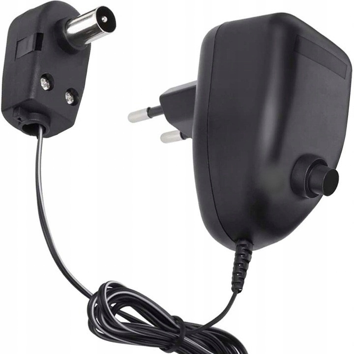 Антенный источник питания с разделителем напряжения, используемый для питания антенных усилителей в антеннах DVB-T/DVB-T2. После установки коаксиального кабеля в разветвитель и подачи питания в розетку переменного тока он может оставаться включенным.