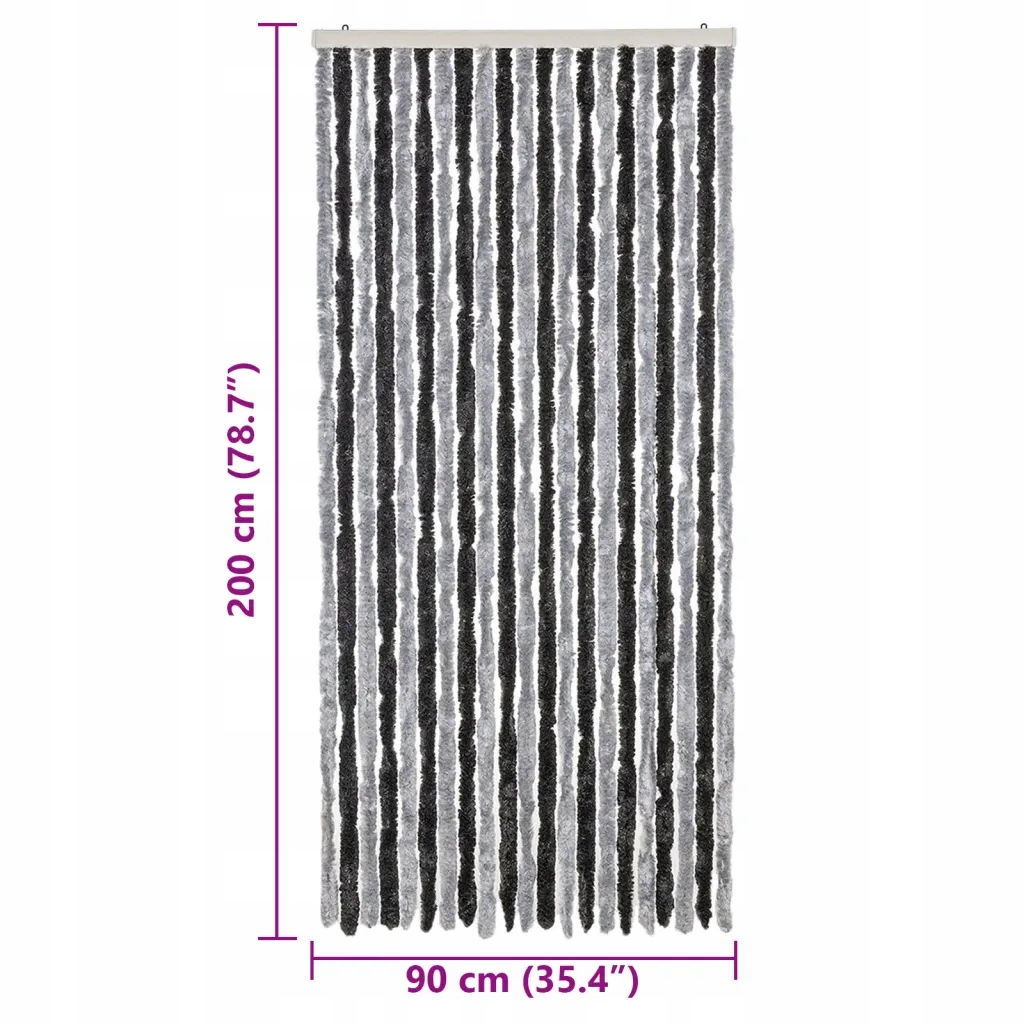 Zasłona przeciwko owadom, szaro-czarna, 90x200 cm, szenilowa