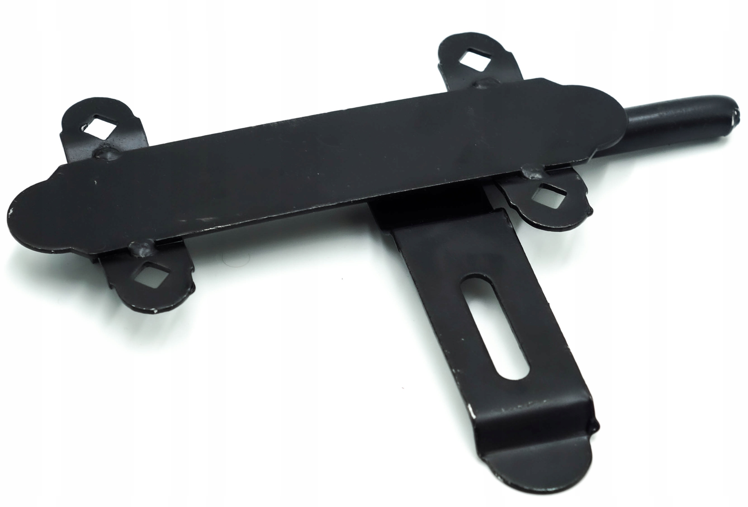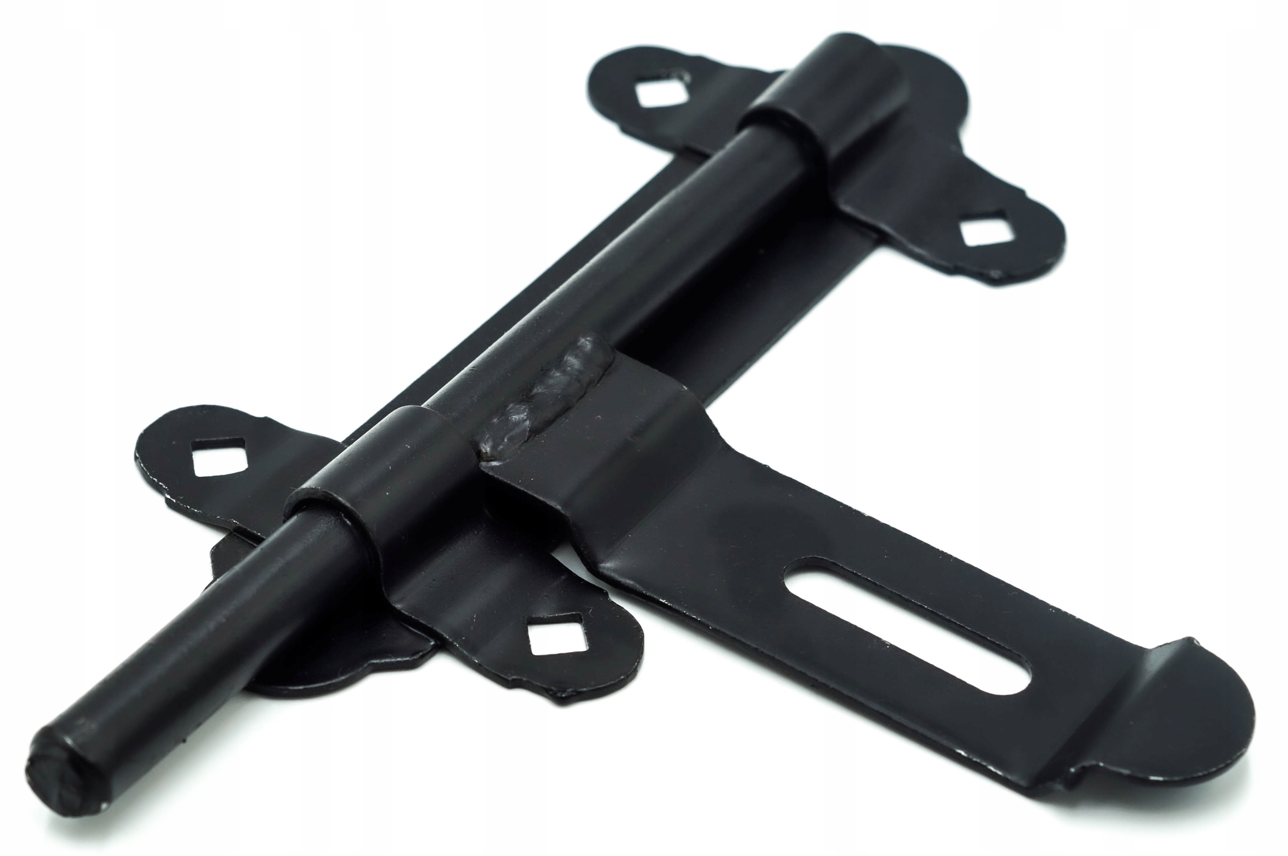 Защелка GARAGE из толстого листового металла, окрашенного в черный цвет. Стопорный штифт 16 мм. Ригель дополнительно имеет функцию запирания навесным замком.