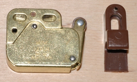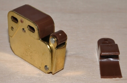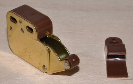 Описание: очень прочная защелка из оцинкованного листового металла (желтая оцинковка) и защелка из коричневого пластика. Защелка в корпусе имеет пружину и защелку, благодаря чему рычаг с большой силой выдвигается наружу и очень надежно фиксируется при нажатии. Защелка очень прочнаяи гарантирует длительную и безаварийнуюработу. Защелка предназначена для закрытия фасадов мебели без ручек. Дверь открывается нажатием на переднюю часть. Для правильной работы защелки двери (фасады) должны быть оснащены отталкивающимися петлями.