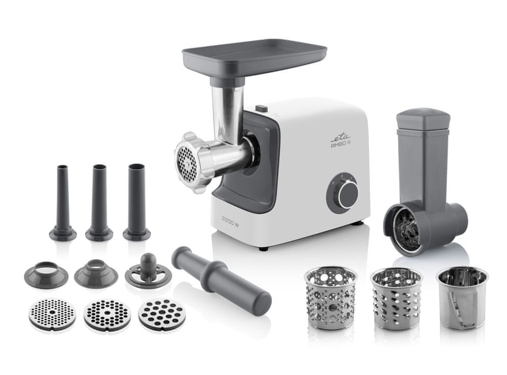 , размолоть мясо с помощью бритвы eta ambo ii b> и не займет много времени. Ее высокая мощность делает его даже измельчать 2,5 кг мяса в минуту . Благодаря прочному ножу из нержавеющей стали, машина eta ambo iii будет справляться со всеми видами мяса.