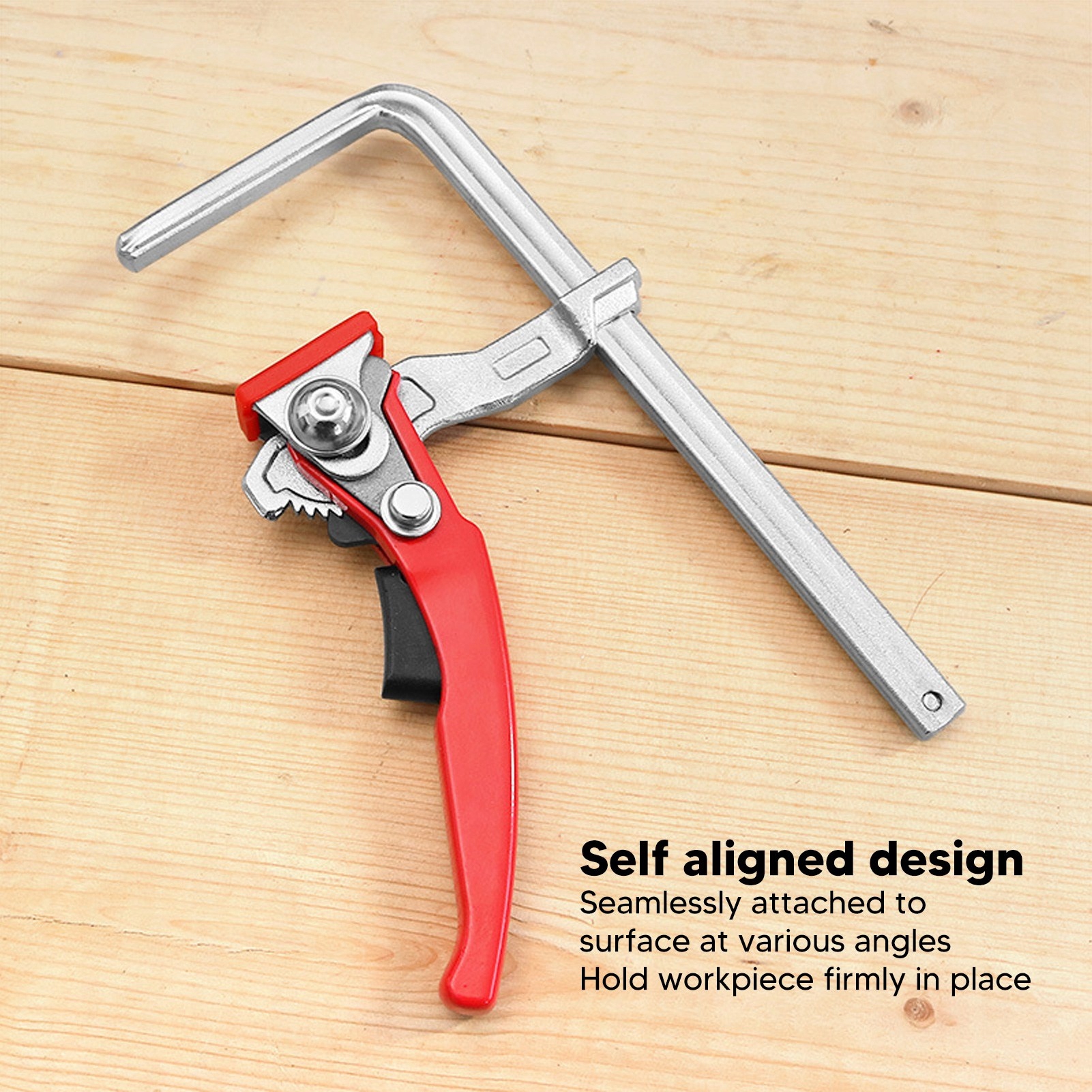 3、НАЧАЛЬНО ФИКСИРОВАНО: Настольный зажим с храповым механизмом имеет самовыравнивающуюся конструкцию, которую можно плавно прикреплять к поверхностям под разными углами и надежно удерживать заготовку на месте.