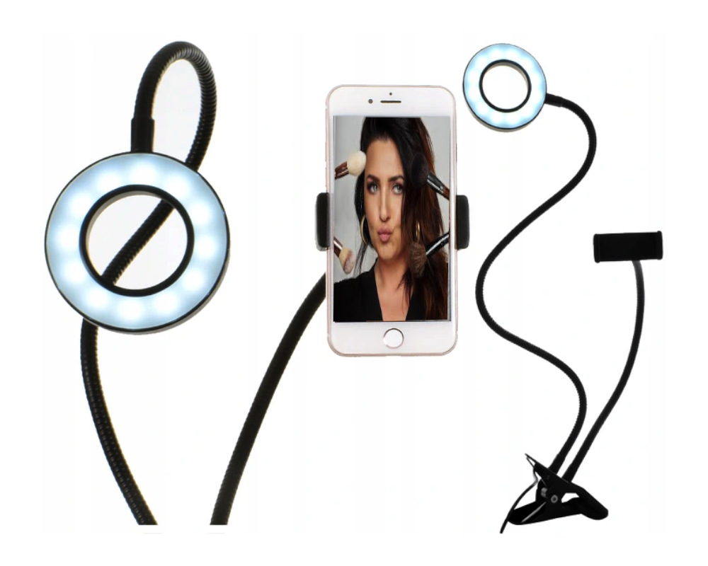 Многофункциональная светодиодная лампа будет прекрасно работать как держатель телефона или веб -камера . В то же время он выполняет функцию как осветирующую лампу во время Viedorzms. Ручка содержит уверенно и стабильный телефон , а лампа работает как освещение объекта . Это гаджет, который очень полезен во время онлайн -уроков , прямой трансляции, удаленной работы , записи видео -блогов , фотографии или создания макияжа .