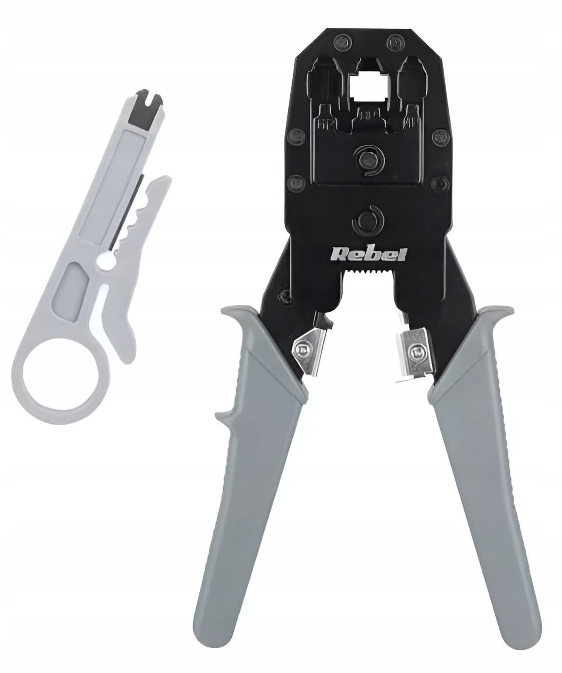 Cramp для телефонных и компьютерных кончиков 4p, 6p и 8p-это устройство, которое будет полезно на семинаре каждого DIY. На комфорт использования инструмента влияет эргономичные резиновые ручки, которые идеально находятся в руке, что гарантирует точную работу. Вместе с зажимом в наборе вы получаете нож, который позволяет вырезать и удалять изоляцию. /Rj-45