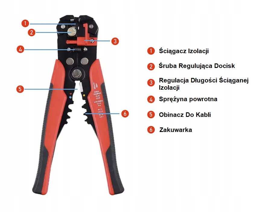 Автоматическая изоляция, предназначен для удаления изоляции и зажимных разъемов. Челюсти продукта были изготовлены из стали CR12MOV, что обеспечивает надежность во время работы. Диапазон Welt составляет от 0,2 мм² - 6 мм². Для работы с непрерывными разъемами диапазон от 0,5 мм до 6 мм, в то время как в случае изоляции он составляет от 0,5 мм до 8 мм
