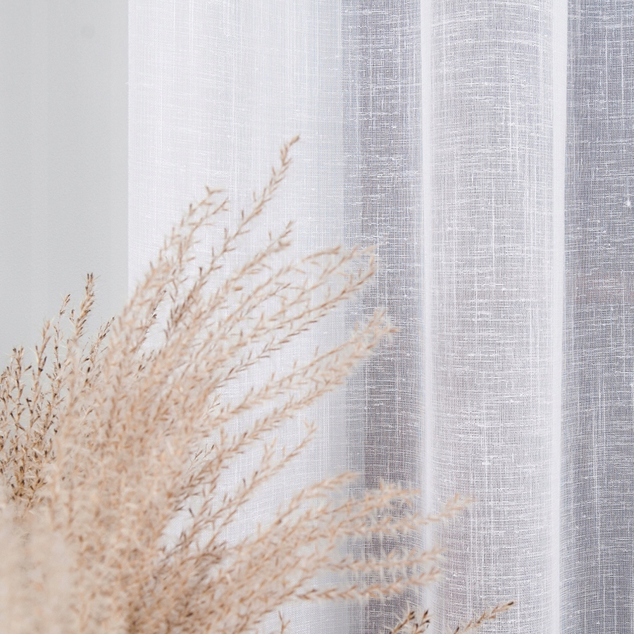 classic snow -white занавес со структурой льна, идеально подходит для всех комнат. Небольшой дождь и ссадины добавляют естественный и интересный занавес, что делает его очень универсальным