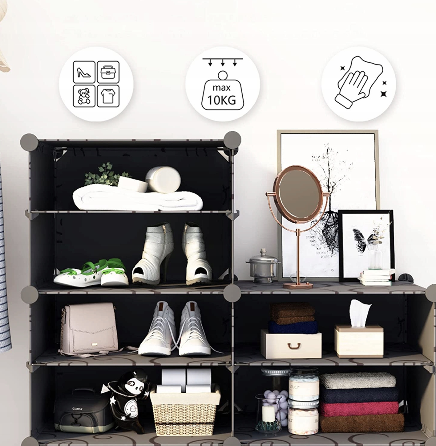 Большая емкость хранения: размер каждого куба составляет 13,78 (длина) * 13,78 (глубина) * 18,5 (высота) (дюймы), а один куб может вмещать до 22 фунтов. Мы также предлагаем подвесную вешалку для одежды, на которой вам будет достаточно места для хранения вещей.