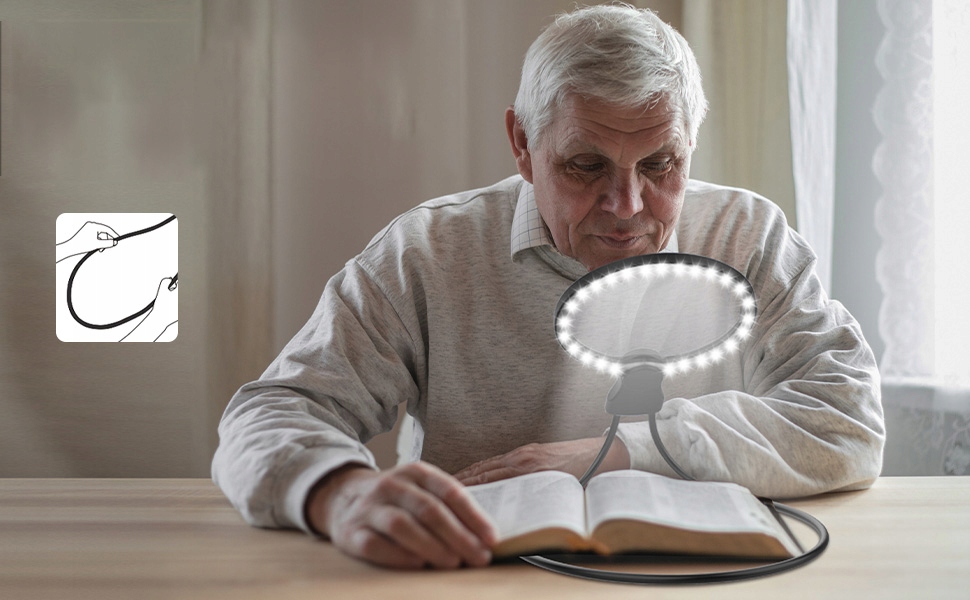 Эта лупа светит намного ярче, чем традиционные стеклянные лупы. Прочная шейная петля обеспечивает стабильность и гибкость, что делает его надежным инструментом для различных занятий, особенно для людей со слабым зрением.