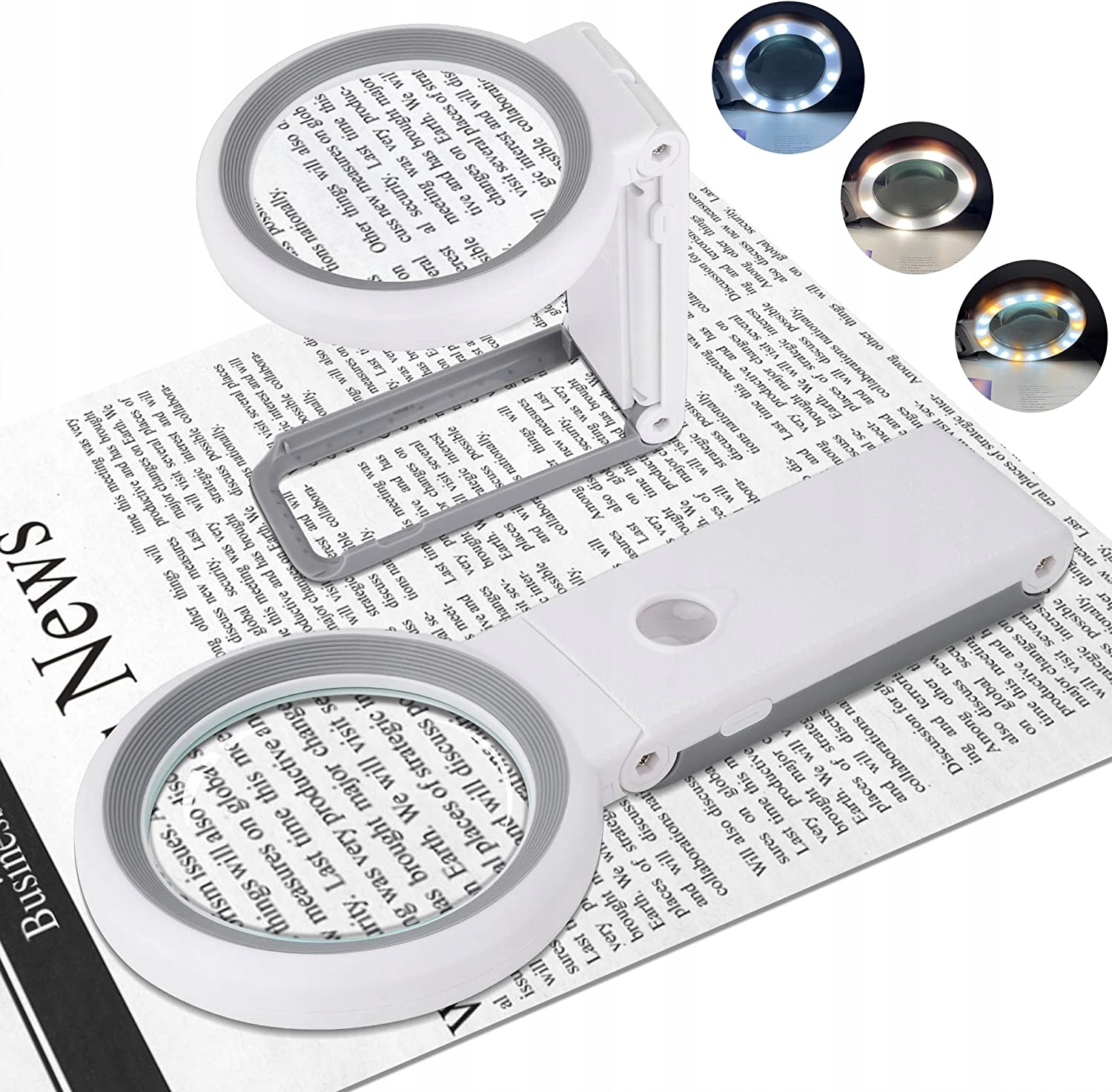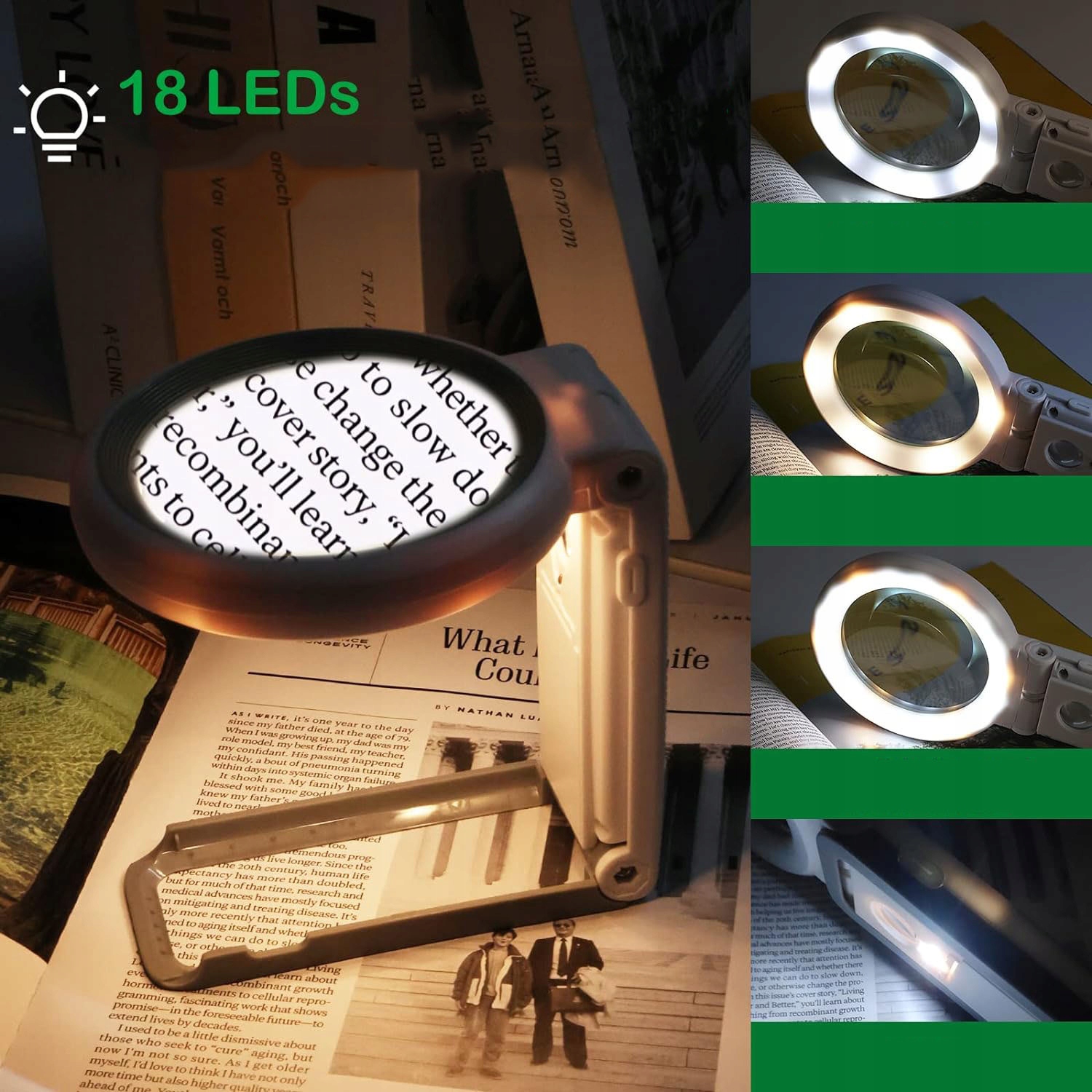 Увеличительное стекло с подсветкой и подставкой, складная лупа для чтения с 18 светодиодными лампочками