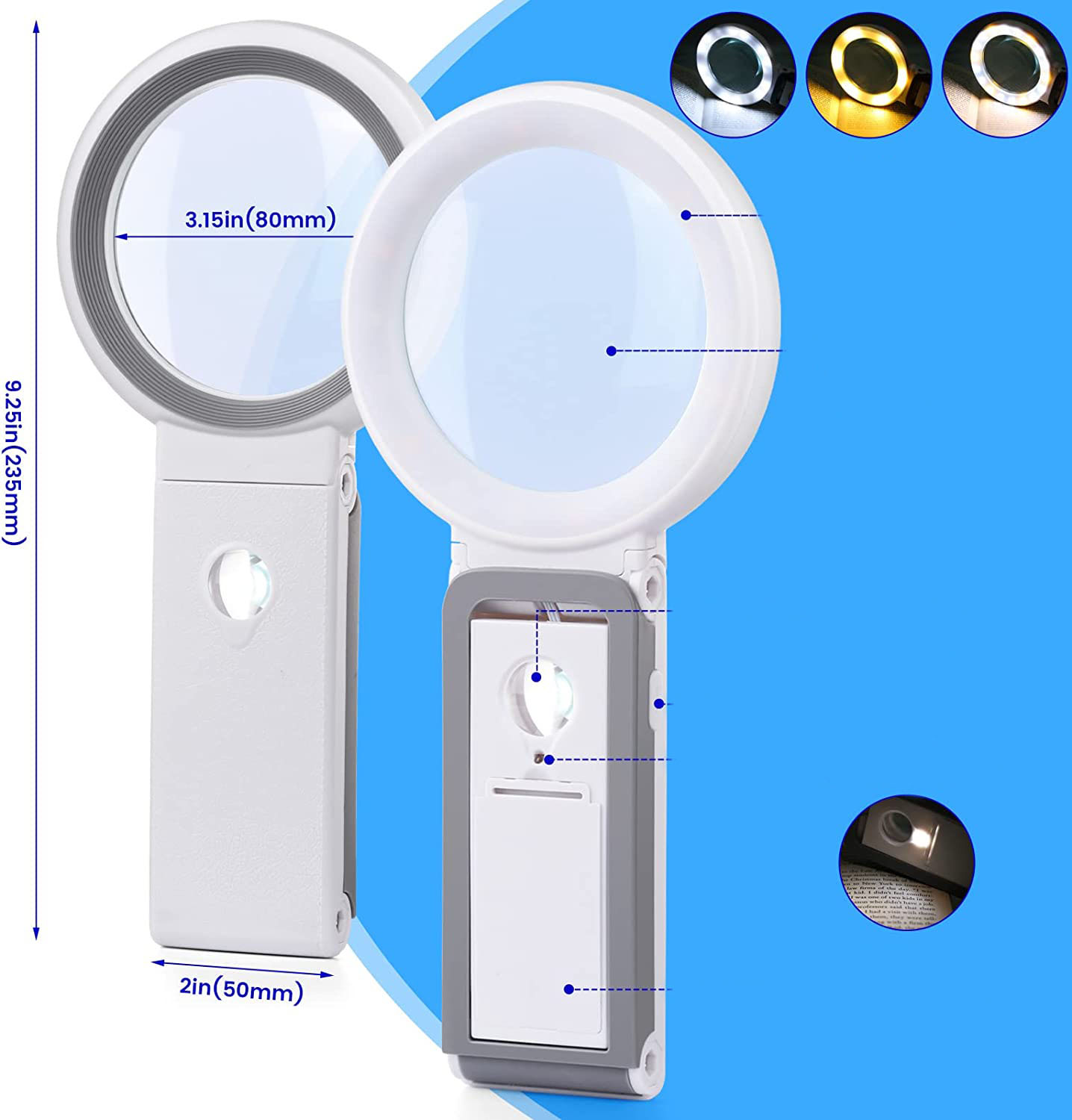 🌟🌟18 светодиодов:Лупа на 18 светодиодов оснащена энергосберегающими светодиодами, которые обеспечивают хорошее освещение. даже при слабом освещении, что сделает использование более комфортным и лучше защитит ваши глаза.