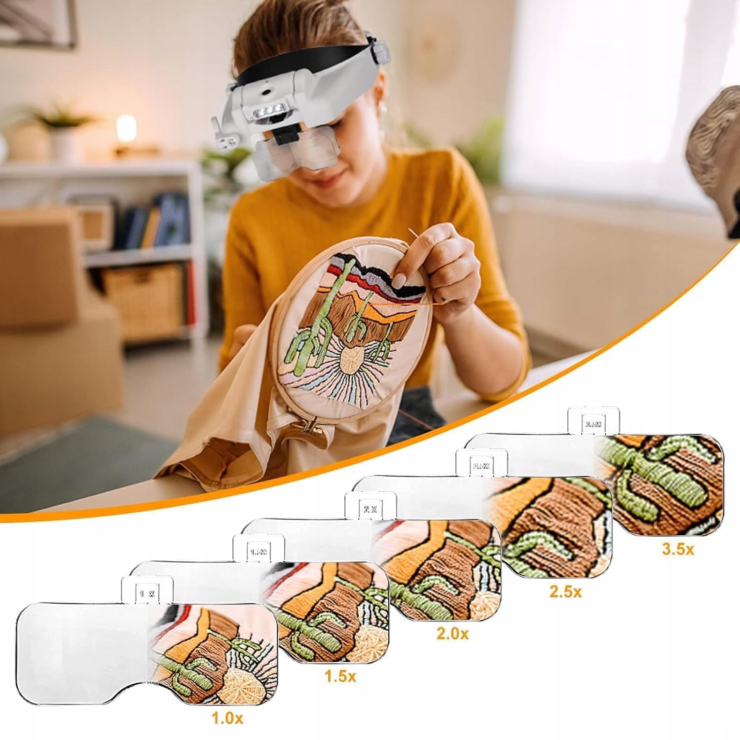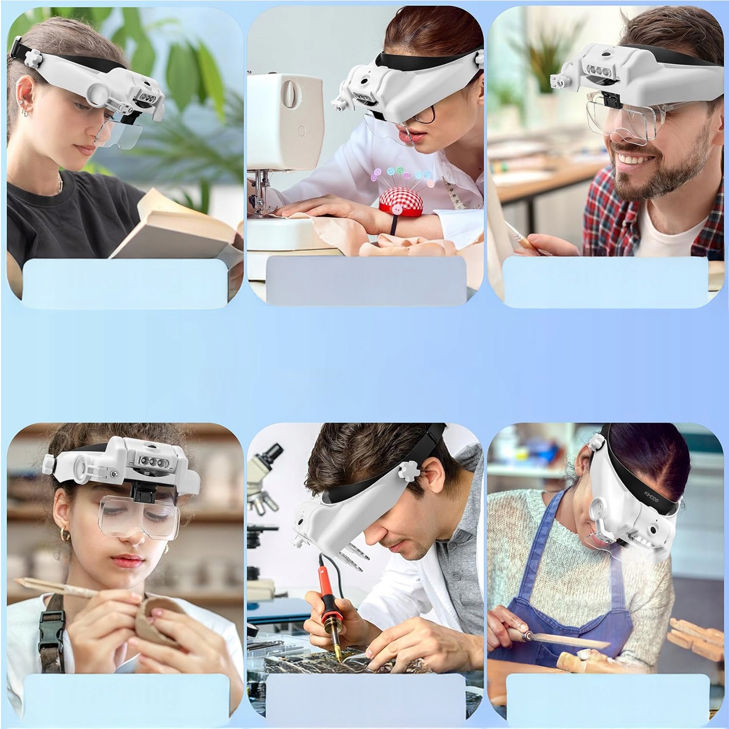 🔎🔎 ШИРОКОЕ ПРИМЕНЕНИЕ: Мягкая губка внутри лупы, изготовленная из высококачественного пластика и акрила, обеспечивает комфорт при ношении. Это также может помочь улучшить плохое зрение и освободить руки для работы за один раз. Для различного использования: чтение, рисование, наблюдение, моделирование, ремонт, шитье, пайка, изготовление ювелирных изделий и другие хобби/поделки.