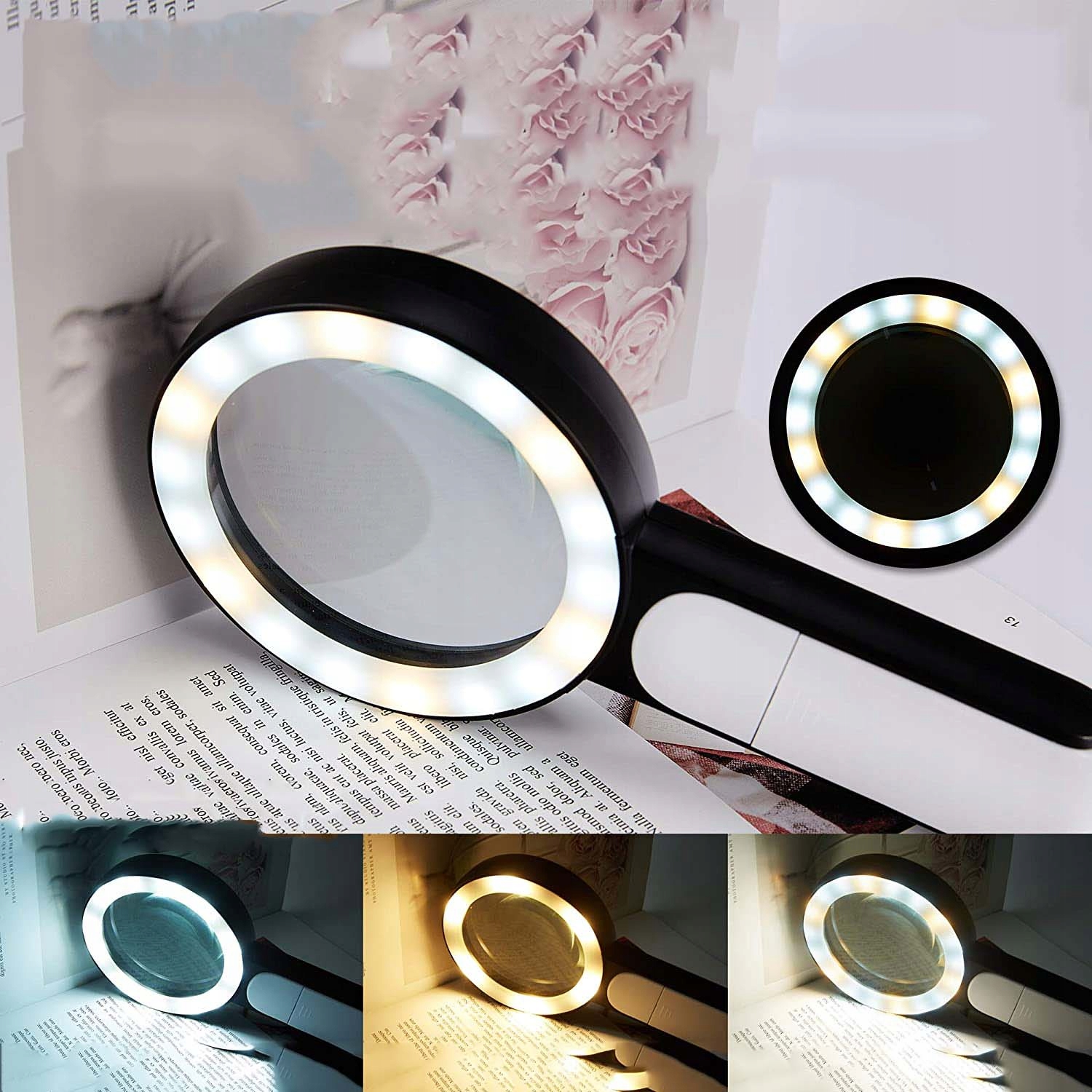 🎊🎊 МНОГОФУНКЦИОНАЛЬНЫЙ ИНСТРУМЕНТ: Увеличительное стекло со светодиодной подсветкой идеально подходит для пожилых людей и детей, отлично подходит для чтения книг, газет, журналов и т. д. Для детей увеличительное стекло также отлично подходит для прогулок на свежем воздухе и открытий. различные красоты природы.