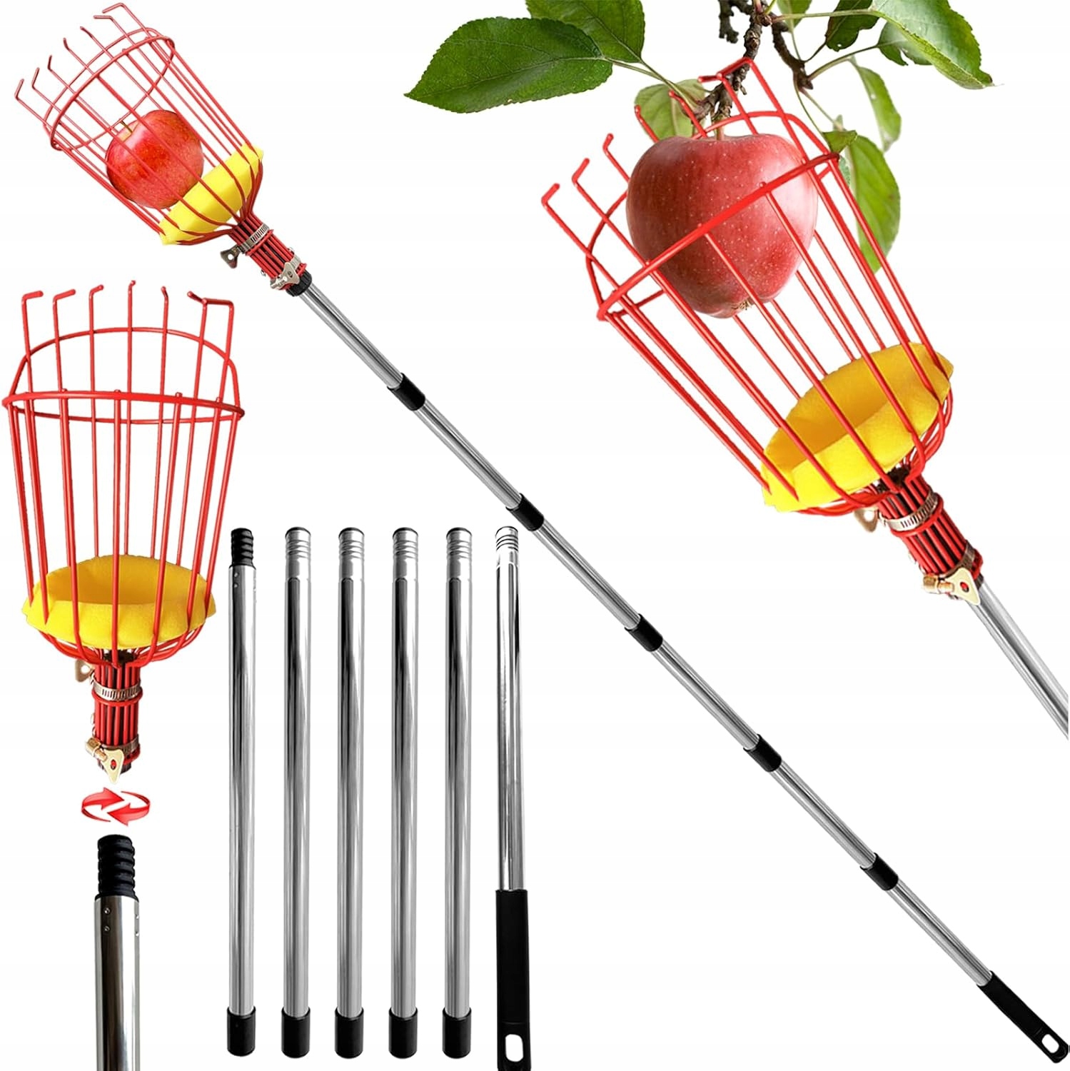 🔹 Легкий сбор урожая без лестницы - просто вытащите палку и разведите фрукты прямо с земли! Идеально подходит для яблок, груш, слив и других фруктов.