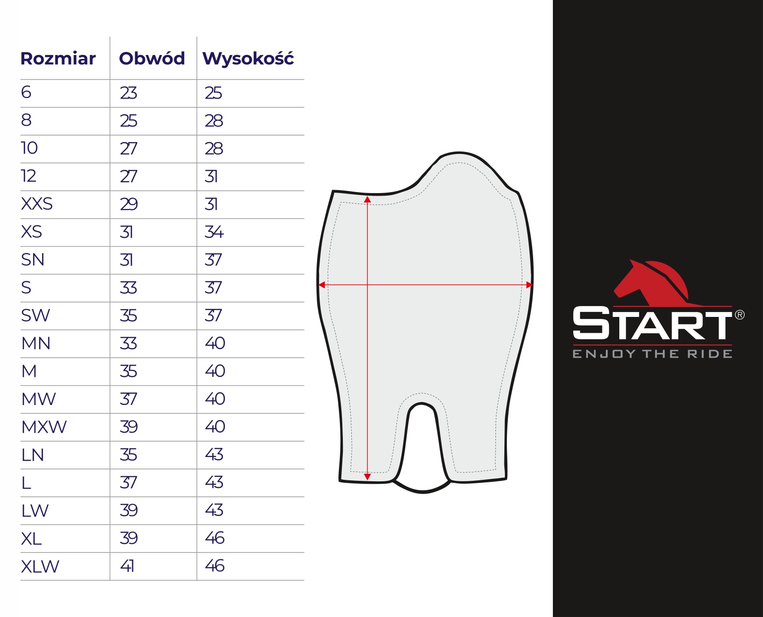езда на лошадях. Start также оснащен верхним крепежом на липучке и более низким закреплением для Snap, что еще больше повышает стабильность и уверенность в теленке. Гибкая резина для нанесения подошвы обуви играет важную роль в стабилизации шапок, а их правильное профилирование заставляет их идеально придерживаться. Кэпки также имеют гибкую вставку по всей длине, благодаря которой они идеально соответствуют теленку. Эта функция также облегчает выбор правильного размера.