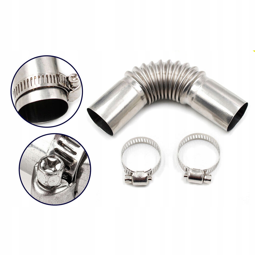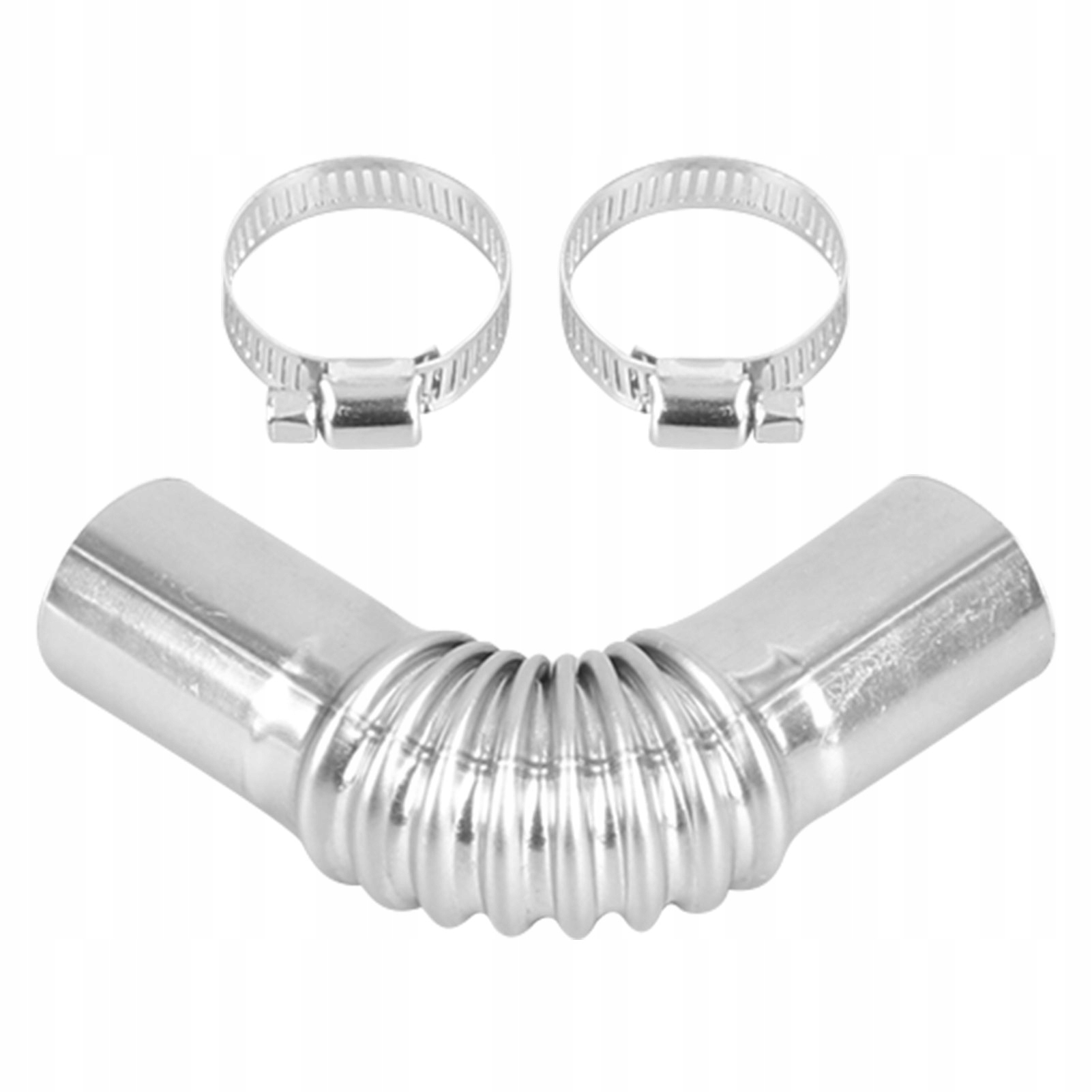- Наш продукт поставляется с двумя зажимами из нержавеющей стали, которые позволяют легко соедините колено выхлопной трубы с выхлопным шлангом без использования специальных инструментов или навыков, что позволит выполнить установку быстро и легко.