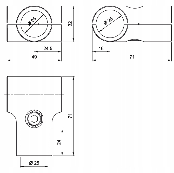 З'єднувач для труб AMIX "T" fi-25