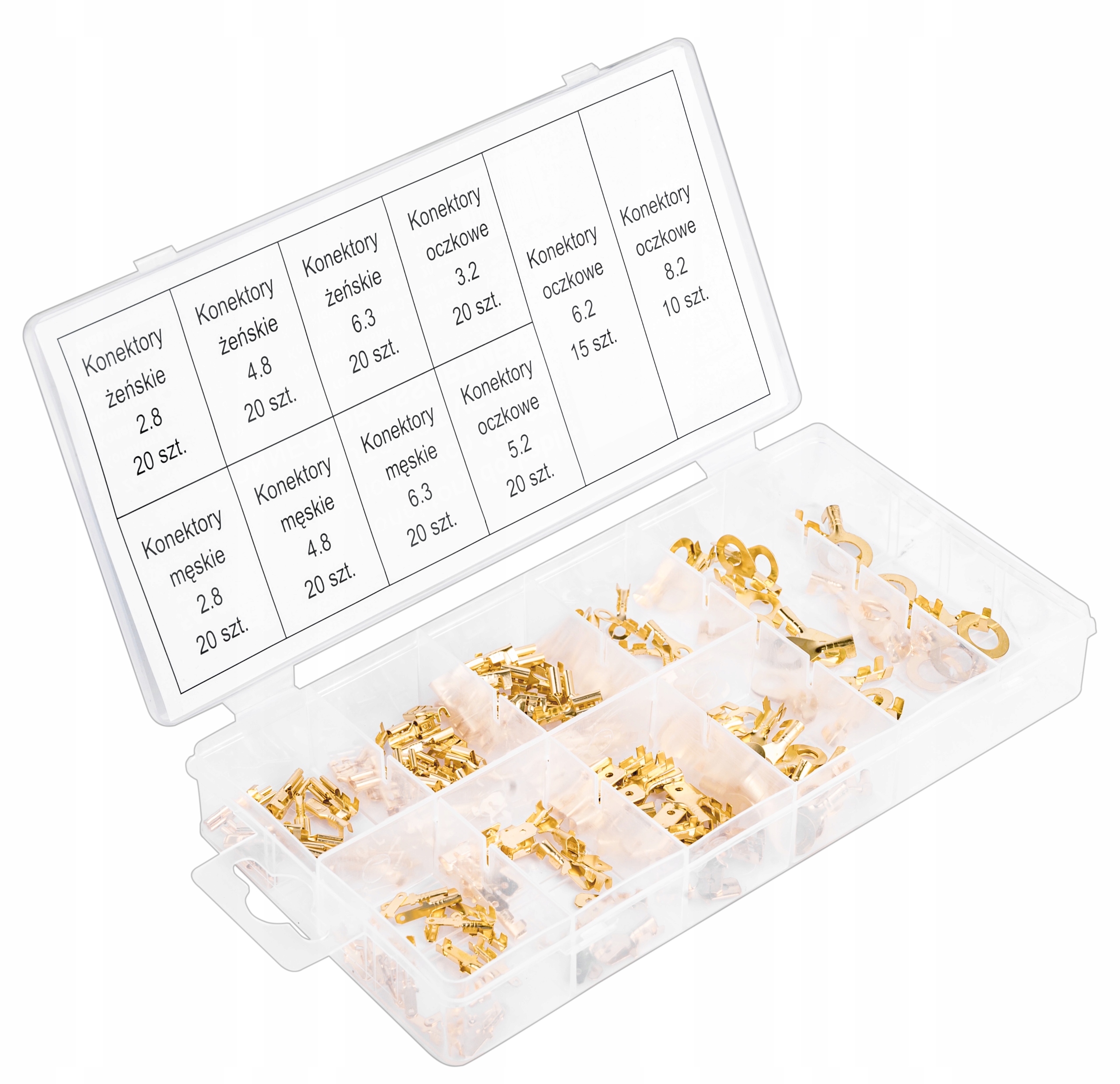Комплект упакован в пластиковую коробку , отсортированы по размерам, прозрачны - чтобы вы могли легко проверить количество разъемов.