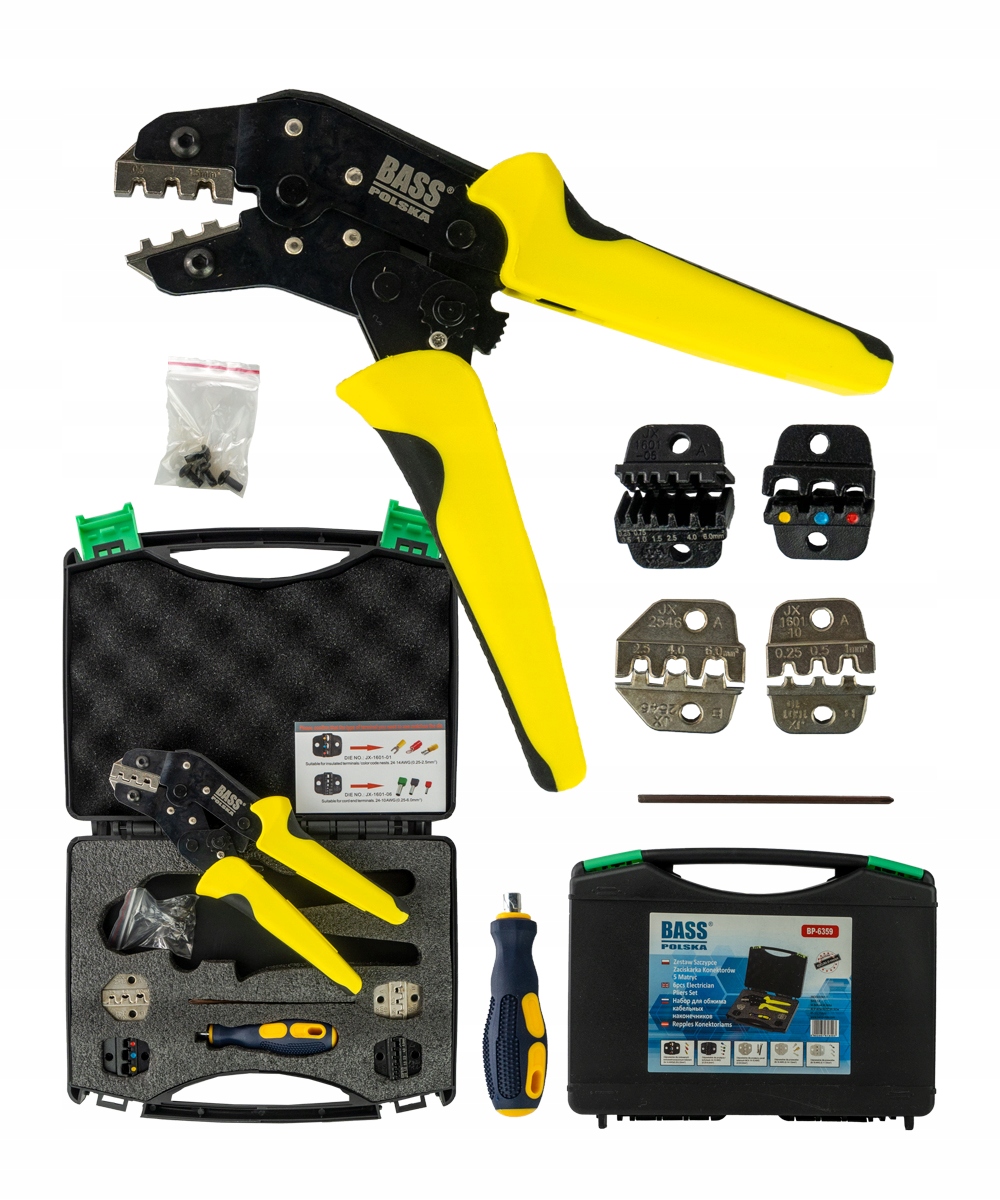 Клещи для электротехнических и электротехнических работ, для обжима разъемов (вилка, петелька) и антенных разъемов с кабелями. Инструмент с регулируемым храповым механизмом рассчитан на 5 самых популярных типов разъемов.