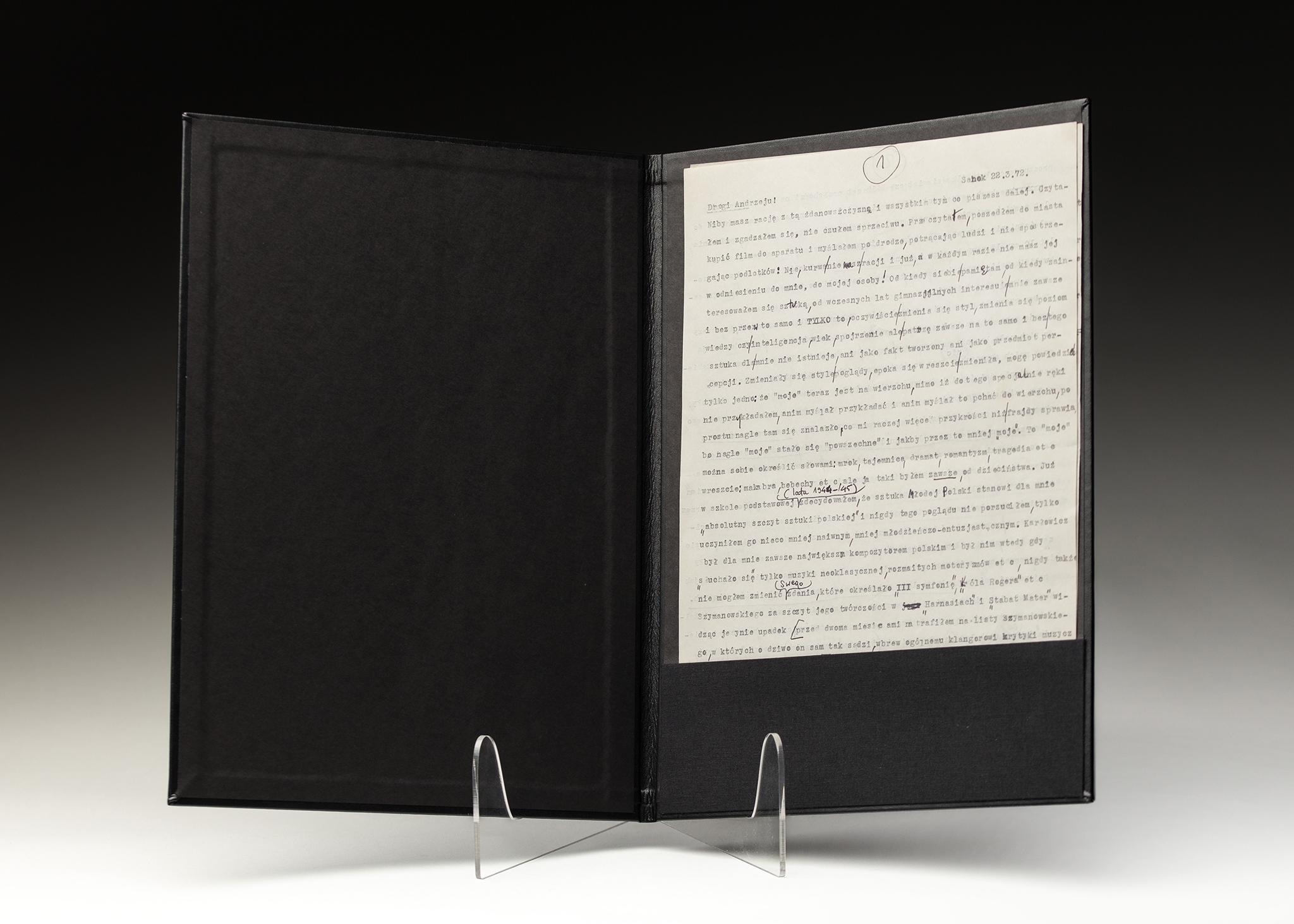 Уникальное, подлинное письмо Здзислава Беккинского от 22 марта 1972 года близкому другу -Андреме Урбанавич (1938-2011) , художник, соучредитель и лидер первого буддийского сообщества в Польше. Что касается человека ", он утверждает со своими интересами с раннего возраста, который он до сих пор остается верным. Он анализирует возможную« альтернативную »форму этого убеждения, рассказывая об поколении, которое имеет особенности определенной умственной мутации, позволяющей изменить предпочтения или критерии приемной. Религия и вера и знание самого Urbanowicz. живопись
