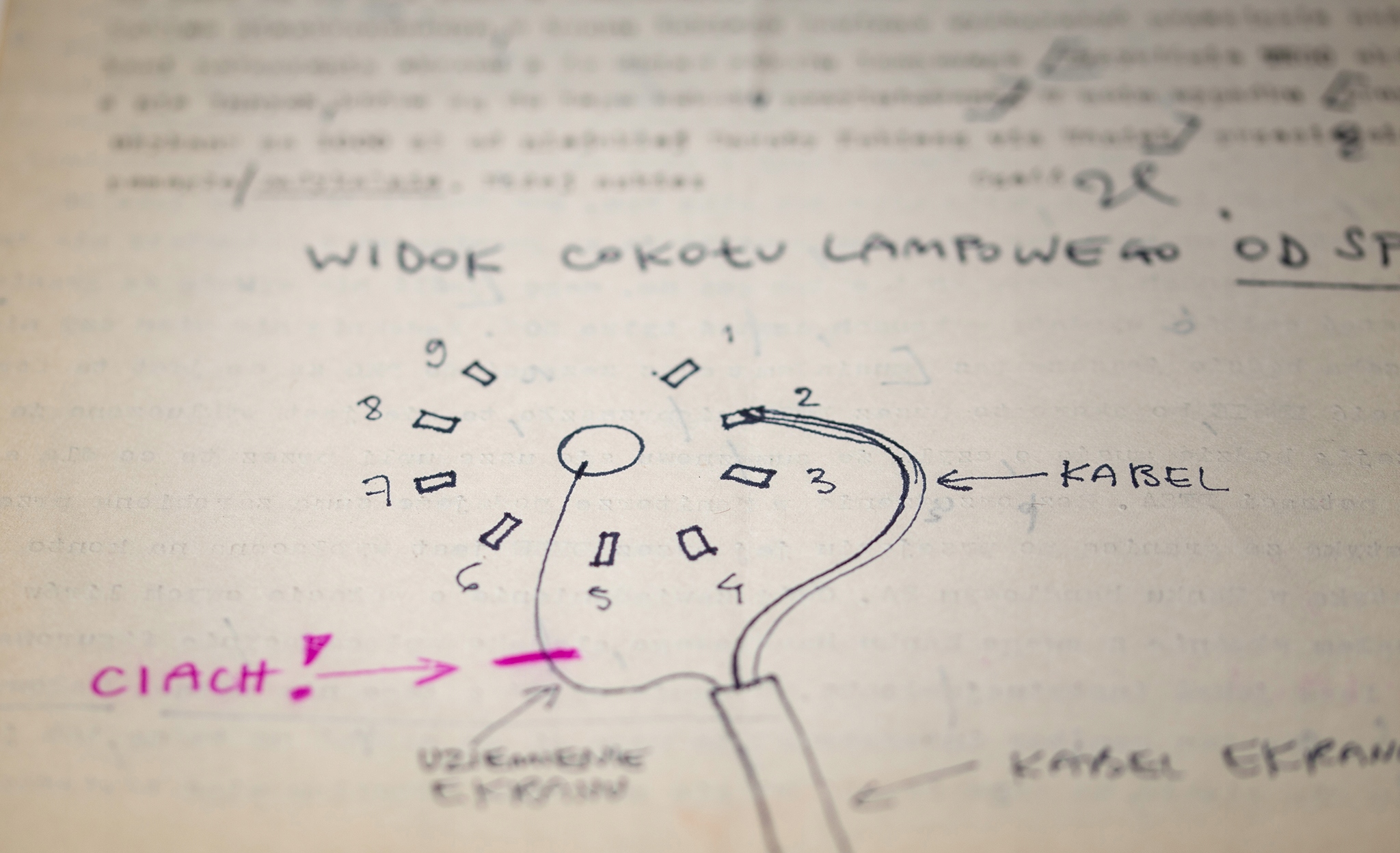 ниже текста, рукописный набросок Zdzislaw Beksiński (сделанный с ручкой на бумаге), иллюстрирующий описанные технические вопросы, поднятые в письме.