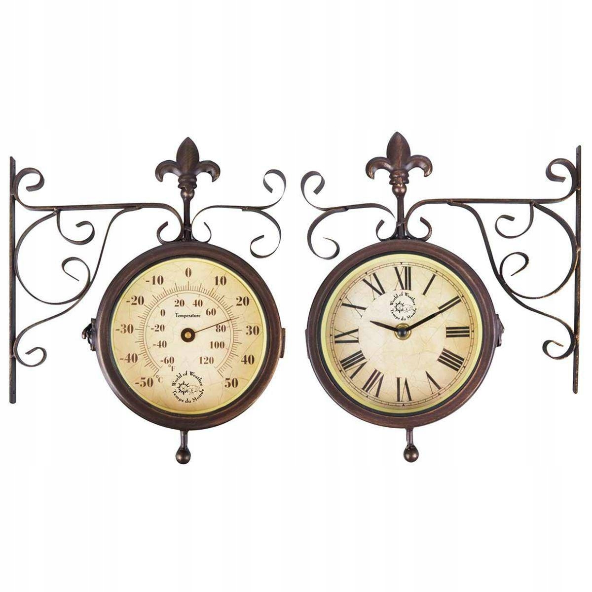 Zegar ŚCIENNY DWORCOWY ZEWNĘTRZNY + Termometr Dwustronny vintage ozdobny