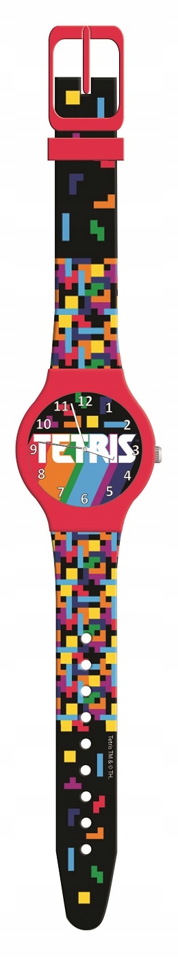 Аналоговые часы с темой тетрис. Длина часов с ремешком: 22,5 см. Диаметр циферблата с корпусом: 3,5 см.