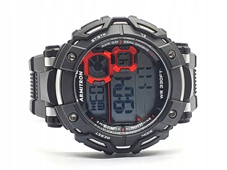 Часы Armitron LCD 40-8359BLK — мужские часы, идеально подходящие как для спортивного стиля, так и для повседневной носки. Имеет черный ремешок и чехол того же цвета; оба элемента изготовлены из удобного в использовании пластика. Читаемый цифровой дисплей покрыт гезалитовым стеклом, обеспечивающим хорошую защиту от возможных повреждений. Часы работают на чрезвычайно точном кварцевом механизме, питающемся от батарейки. Модель «Армитрон» дополнительно оснащена обширным календарем, секундомером, будильником (максимум 5 раз в день), а также функцией согласованного универсального времени и возможностью установки второго, свободно выбранного местного времени. Водонепроницаемость установлена на уровне 100 метров, а это значит, что вода не попадет внутрь часов при плавании или нырянии без подводного плавания.