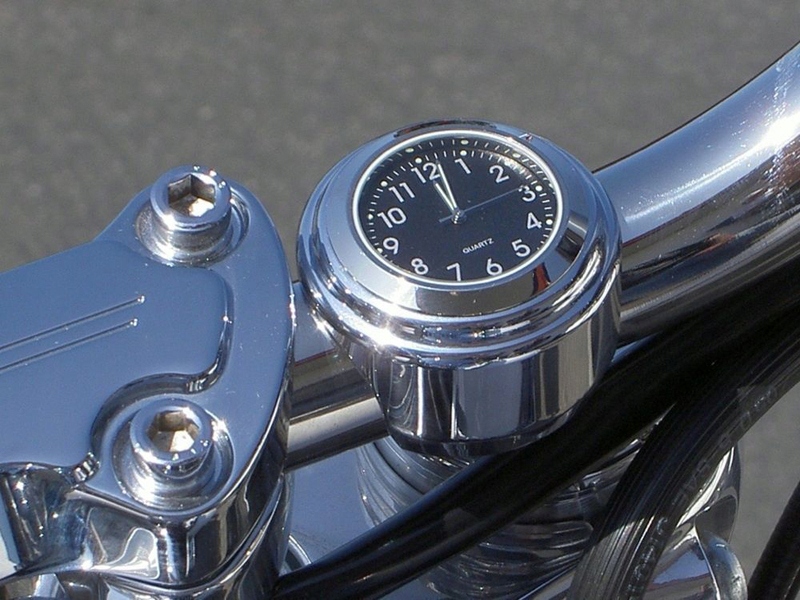 Элегантные хромированные часы подходят практически к любому рулю. В комплект входит шестигранный ключ для установки и резиновая лента для руля.