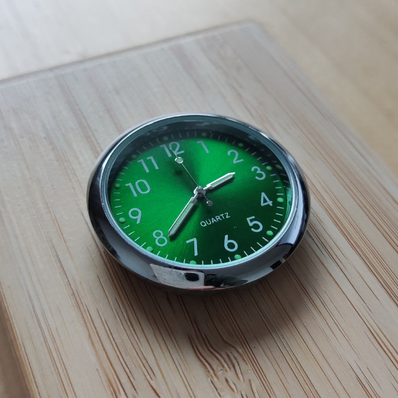 Zegarek Samochodowy - Dekoracjny Naklejany na Kokpit - Chrom Zielony Green
