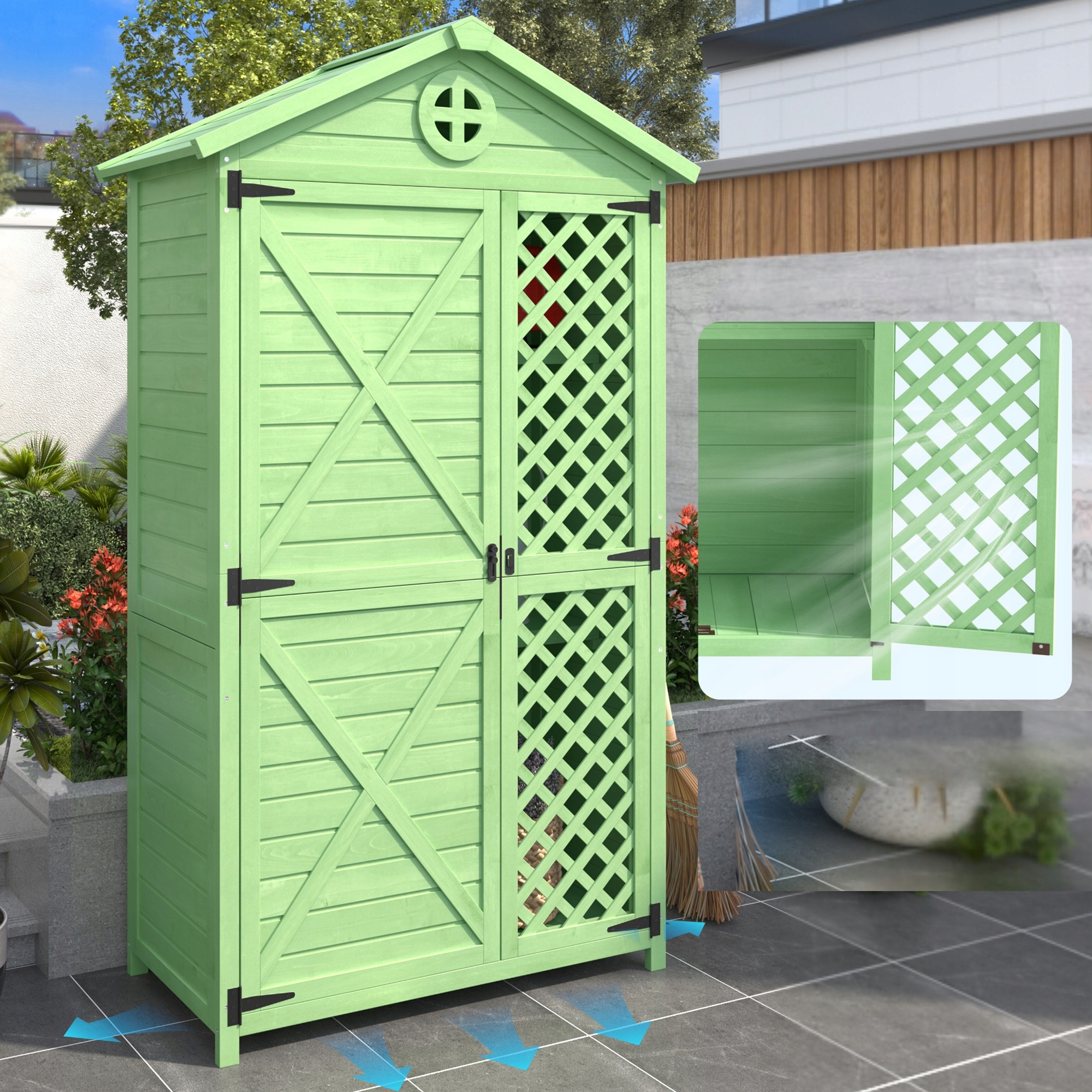 Зеленый 3-часовой деревянный набор для хранения в садовом внешнем шкафу для инструментов в патио