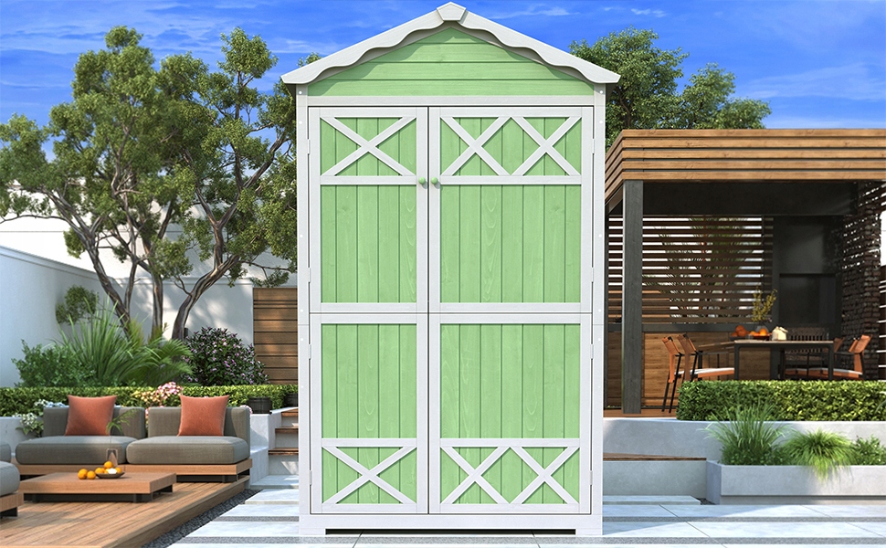 - 1 × деревянный шкаф для хранения в саду (зеленый, 4 отсека)