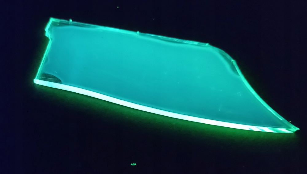 Лак имеет жидкую консистенцию, поэтому его можно наносить тонкими слоями на различные предметы. Они зеленоватые в видимом свете и излучают синий свет в ультрафиолетовом свете. Прозрачные объекты светятся зеленым светом по краям.