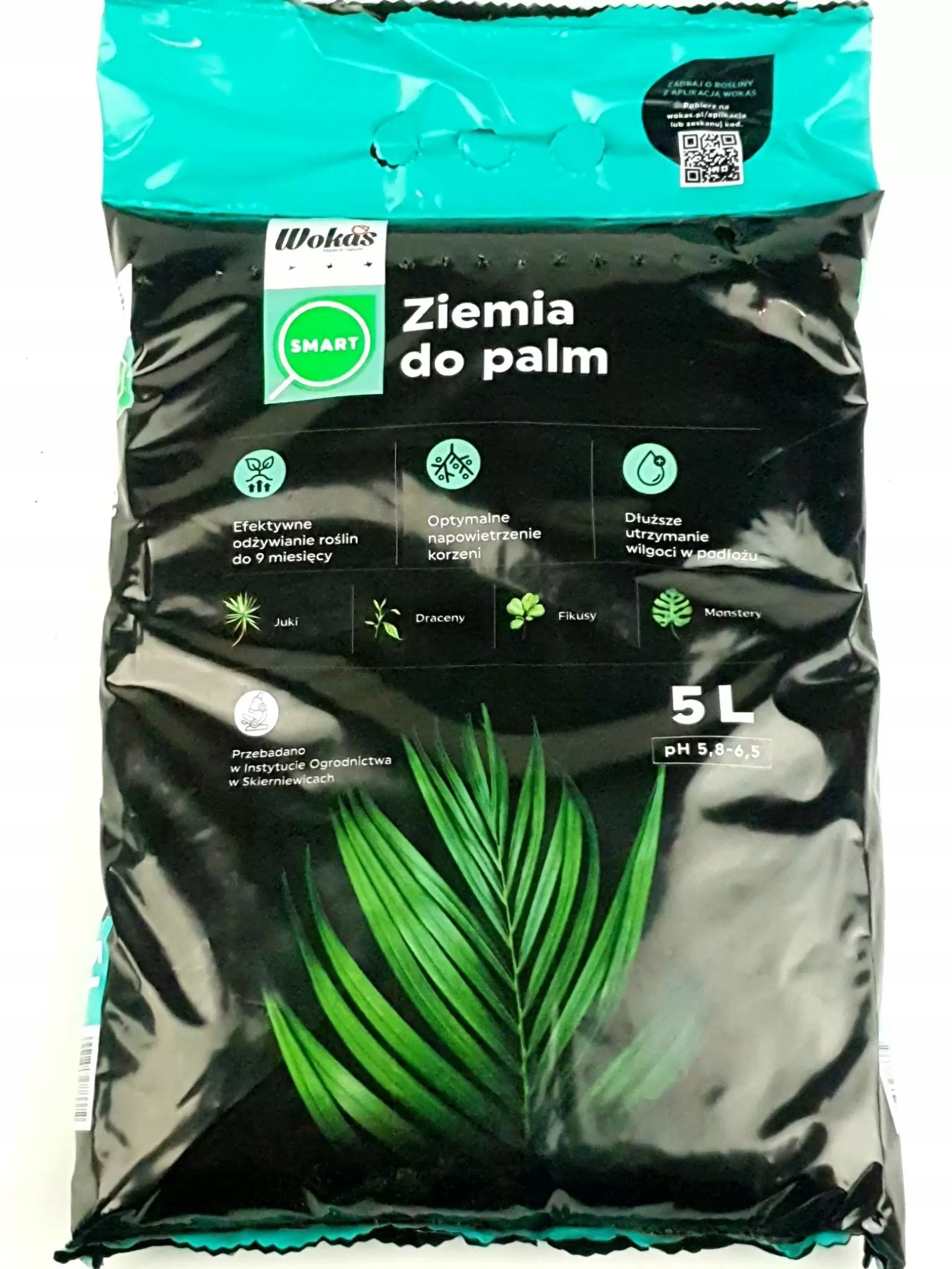 Wokas Smart 5 л Грунт для пальм и зеленых растений, Драцены, Монстеры, Юкки. Готовая смесь торфа верхового, торфа низшего, зеленого компоста, компостной коры, перлита, пористых заполнителей и цеолита.