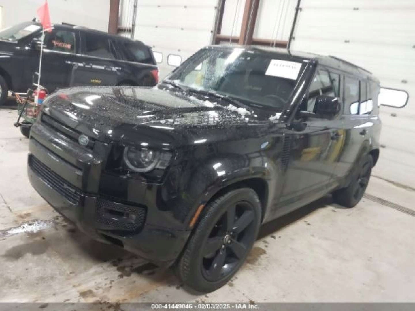 Защитник Land Rover, автомобиль запускается и проезжает от страховой компании.