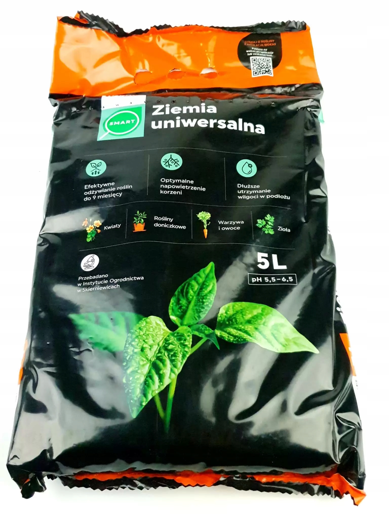 Wokas Smart 5 л Универсальный грунт, сбалансированный субстрат для растений. Приготовлен из верхового торфа, низинного торфа, компостированной коры, зеленого компоста, перлита, пористых заполнителей и цеолита.