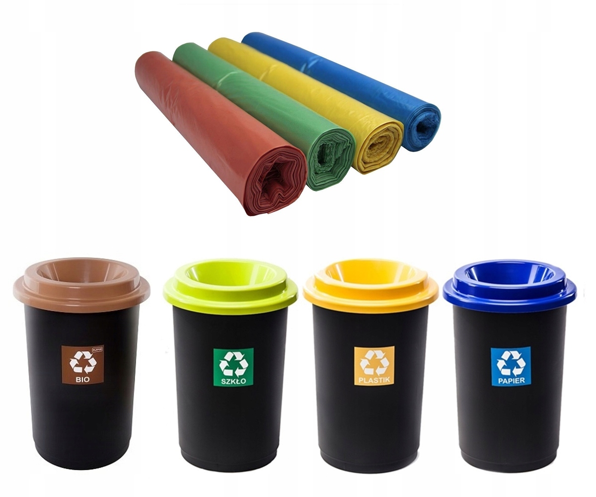 ZESTAW 4x50L kosz do segregacji śmieci + WORKI