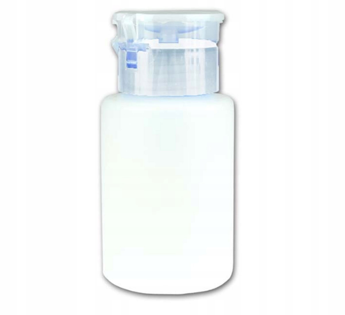 После наполнения поместите руку на ватный диск и нажмите на помпу — дозатор подает жидкость, и мы автоматически увлажняем ватный диск гигиеничным и простым способом.