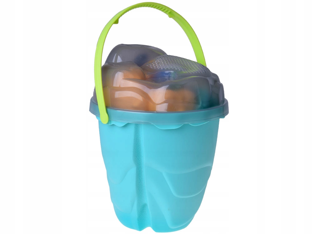 Когда закончите играть, просто положите все элементы в ведро и плотно закройте его крышкой. Ведро имеет удобную ручку с выступами, благодаря которым оно не выскальзывает из детской ручки. В крышке есть небольшие отверстия, выполняющие роль сита: малыш может просеивать песок во время игры.