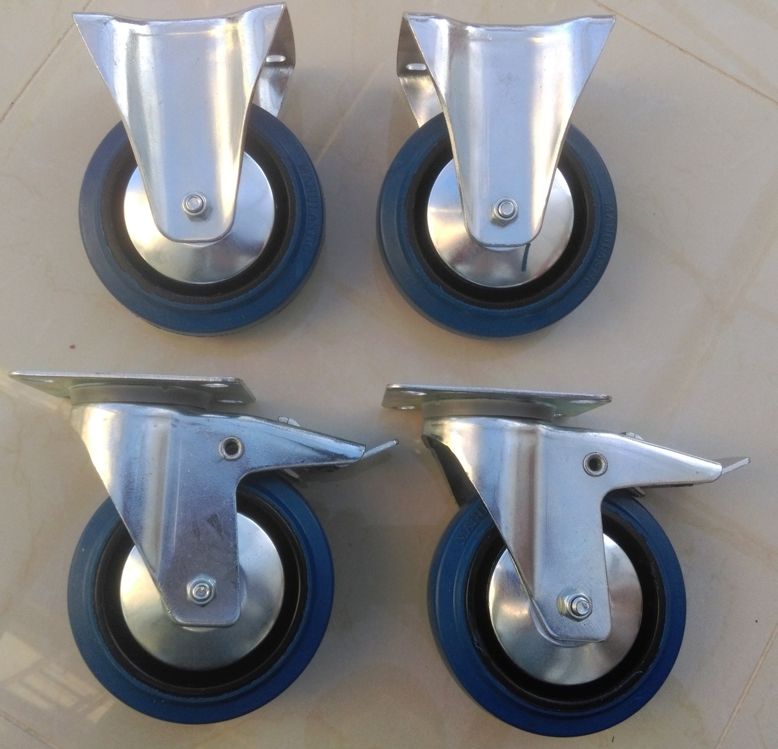 Zestaw kół fi 125 mm 4 szt. płytka, 500 KG hamulec