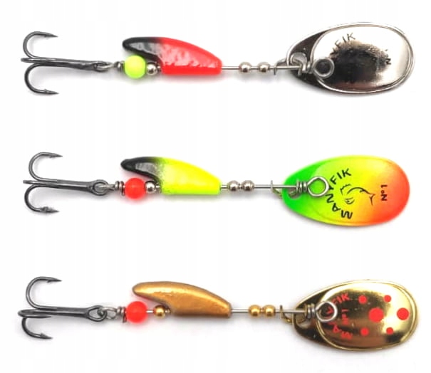 ZESTAW OBROTÓWEK MANYFIK BŁYSTKI MOBBY F # 1 3SZT PRZYNĘTY SPINNINGOWE MIX