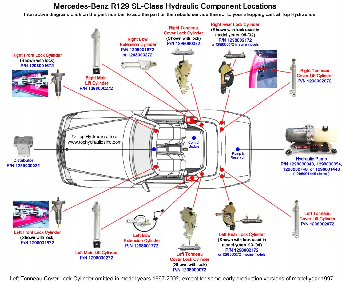 У Mercedes R129 в зависимости от года выпуска было 11 или 12 приводов крыши - в комплект входят все приводы: