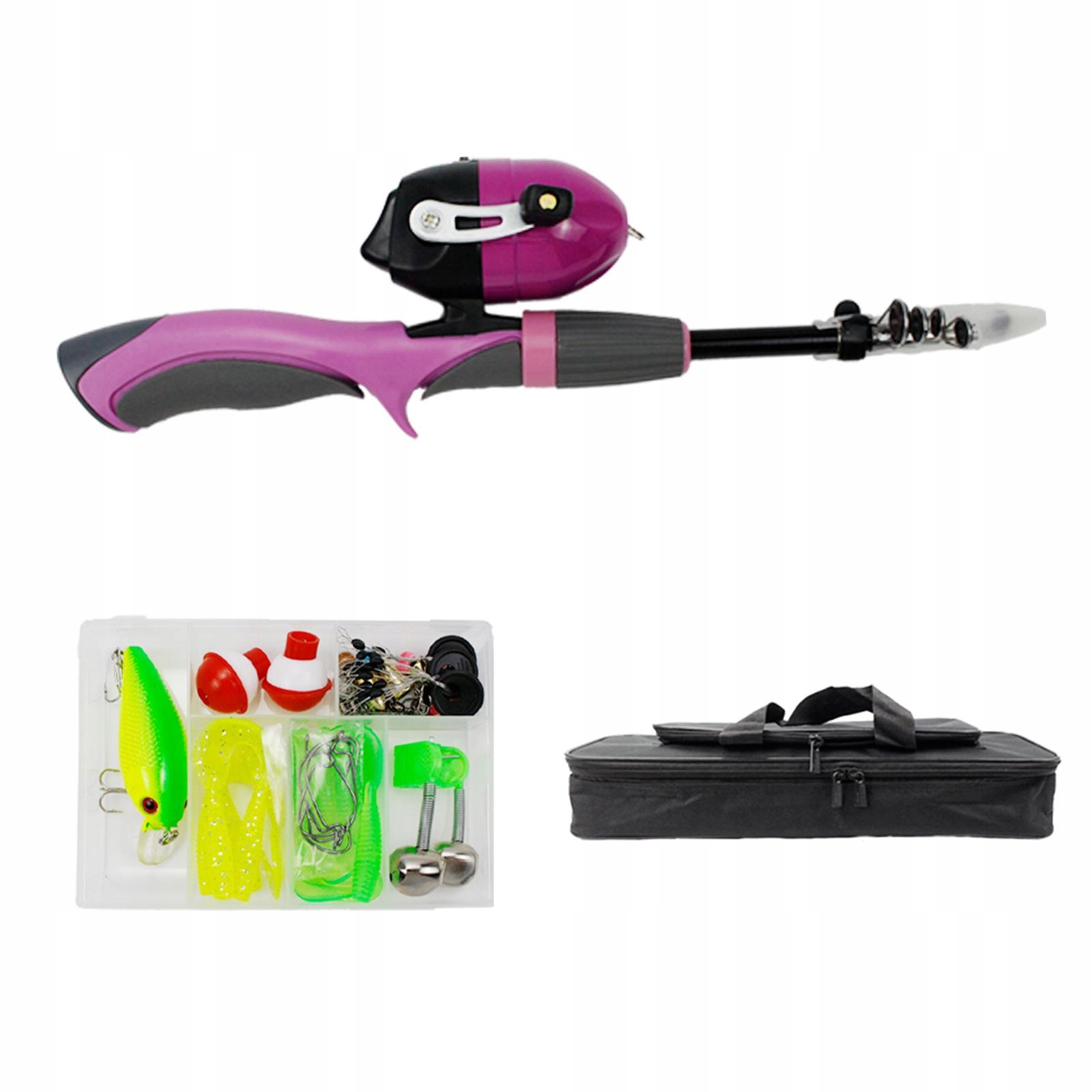 Zestaw wędkarski dla dzieci Pudełko na sprzęt Wędka teleskopowa z kołowrotkiem Różowy