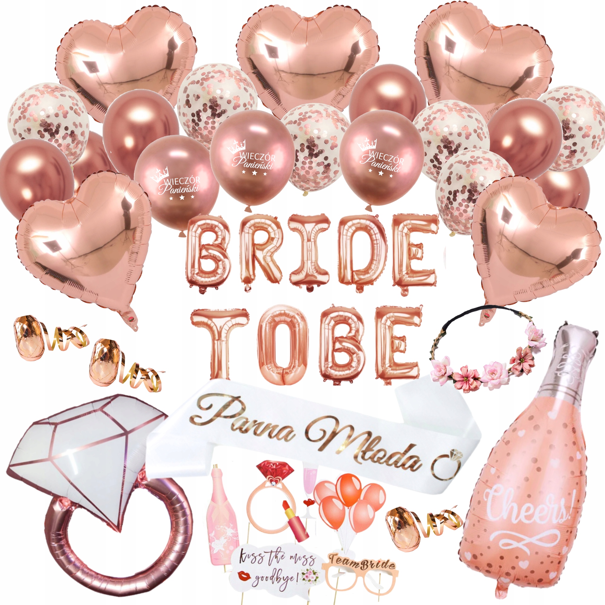 ZESTAW WIECZÓR PANIEŃSKI BALONY SZARFA ZŁOTY RÓŻ DEKORACJE BALON GIRLANDA