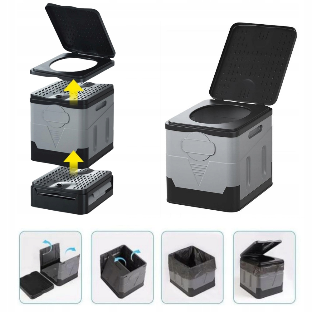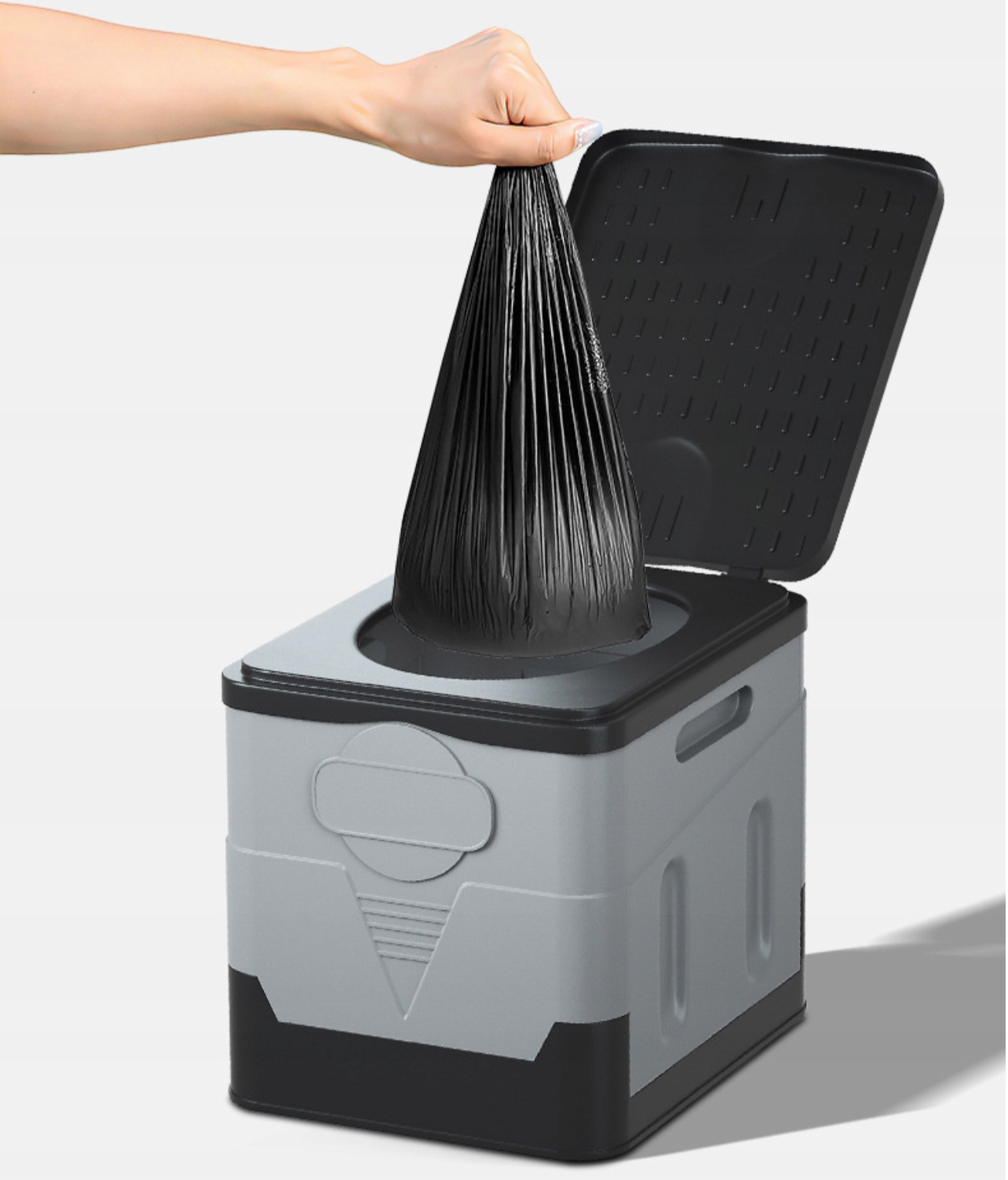 Простота в использовании и чистке: даже новичкам потребуется всего около 20 секунд, чтобы развернуть/сложить его. Его даже не придется чистить после использования, достаточно заменить мешки для мусора. Отвердитель превращает мочу в биоразлагаемый полимер, благодаря чему ваш дорожный туалет не имеет запаха и не наносит ущерба окружающей среде.