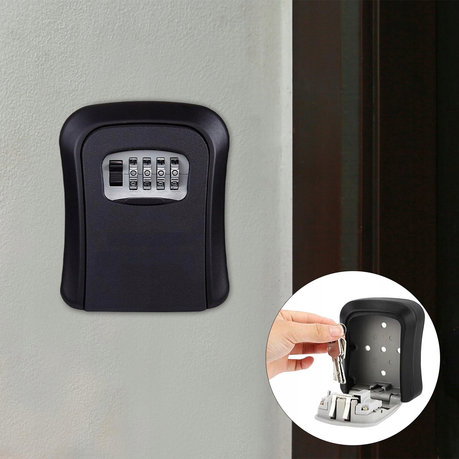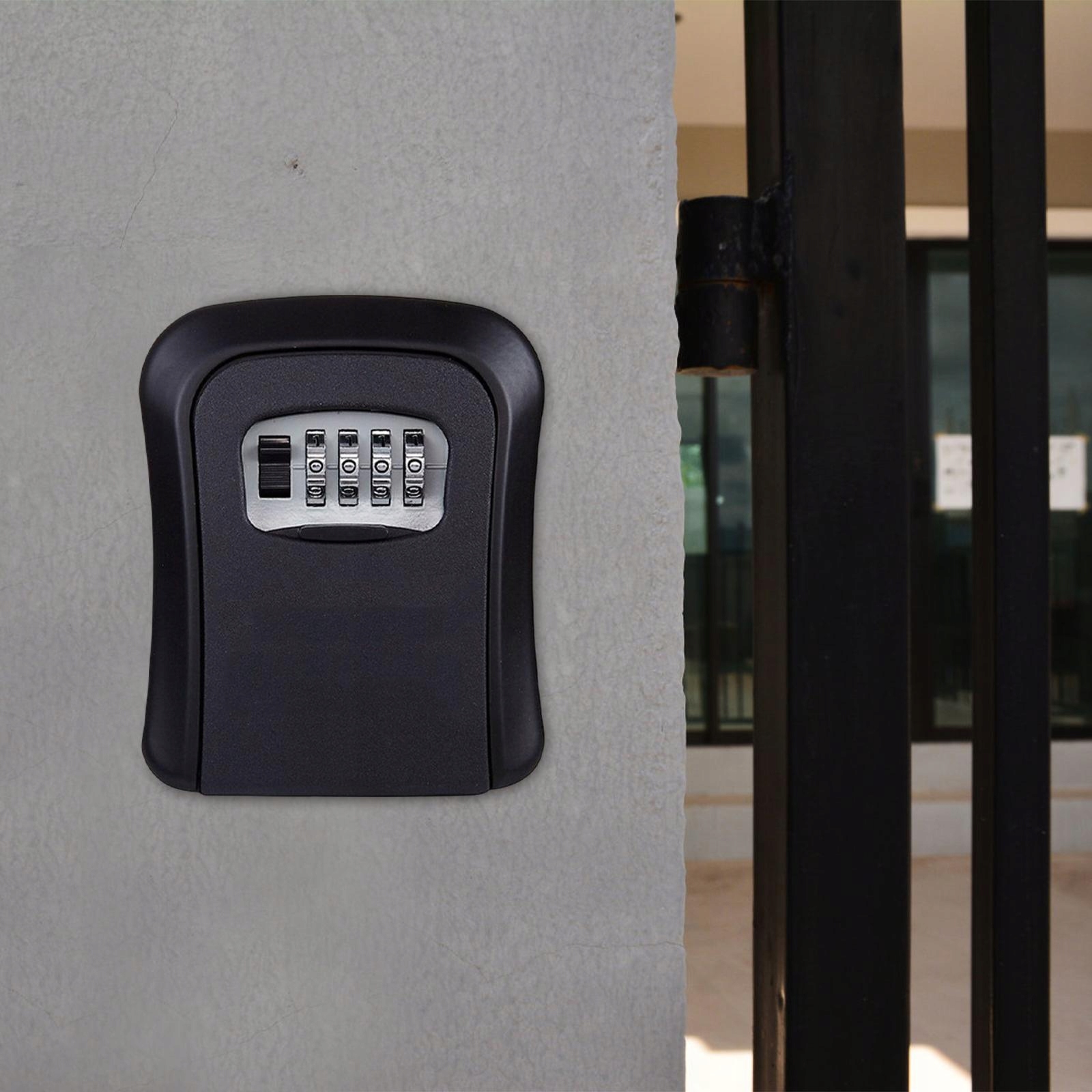 Zewnętrzny schowek na klucze, organizer na klucze, montowany na ścianie, 4-cyfrowy, czarny