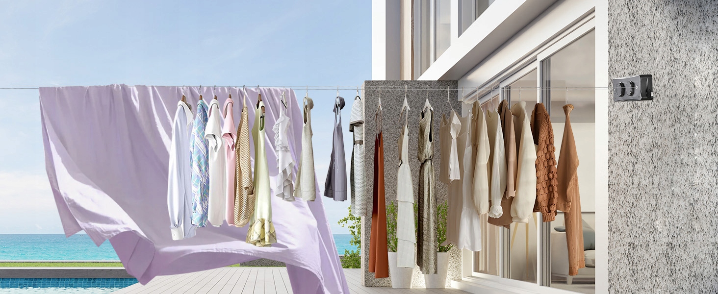 Этот погребенный кабель нижнего белья на балконе без бурения оборудована двумя регулируемыми переключателями натяжения, чтобы предотвратить висящую одежду и гарантировать, что одежда не будет скользить.